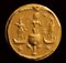 A) In the center, Harpocrates as a youth standing naked on a lotus flower (the lower part of the body hidden inside the lotus ?). On each side, Hermanubis, standing toward the young Horus, on a boat and worshipping. Stars and charakteres. All around, an ouroboros.