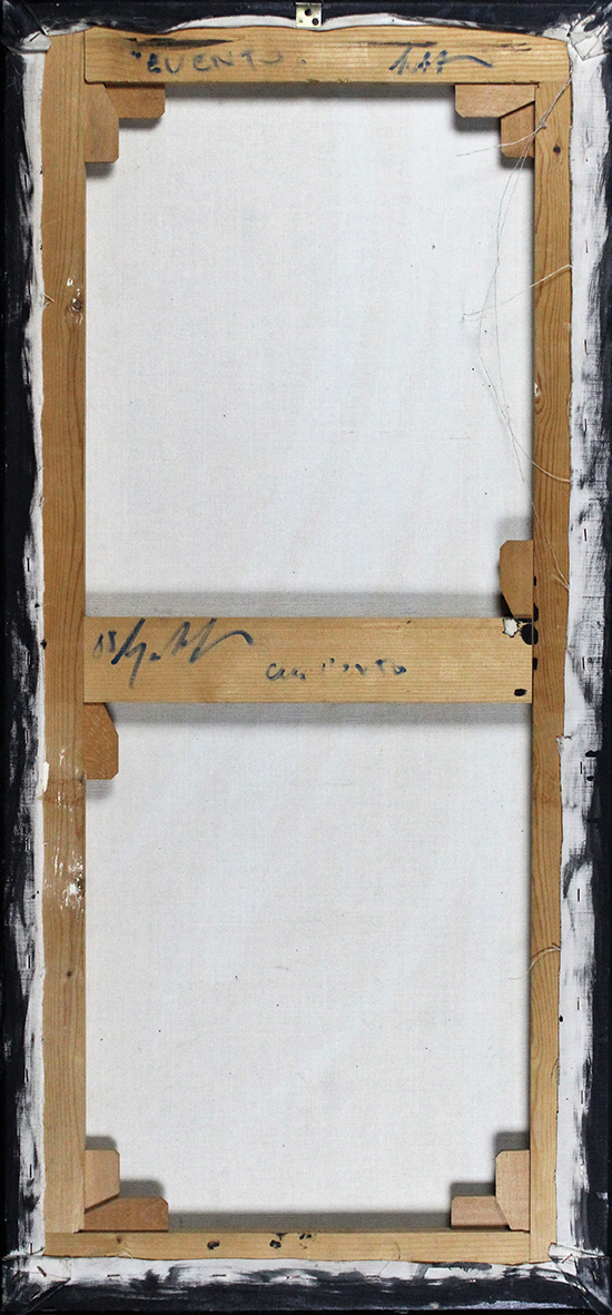 AGOSTINO FERRARI, "Evento" , Anni '90, Olio su tela, Dim. 108x50, Al verso: titolo e firma, Opera senza cornice