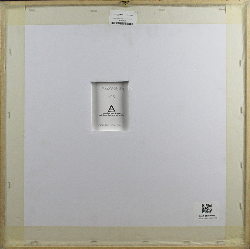 BRUNO MUNARI, "Negativo - Positivo", 1995, Acrilico e collage di cm. 30x30 su cartoncino di cm. 50x50, Opera pubblicata su Catalogo "Bruno Munari Negativo, positivo e altre piccole grandi storie", Al verso: data, timbro "Associazione amici dei musei della città di Cantù e del suo territorio" e firma, Opera con cornice