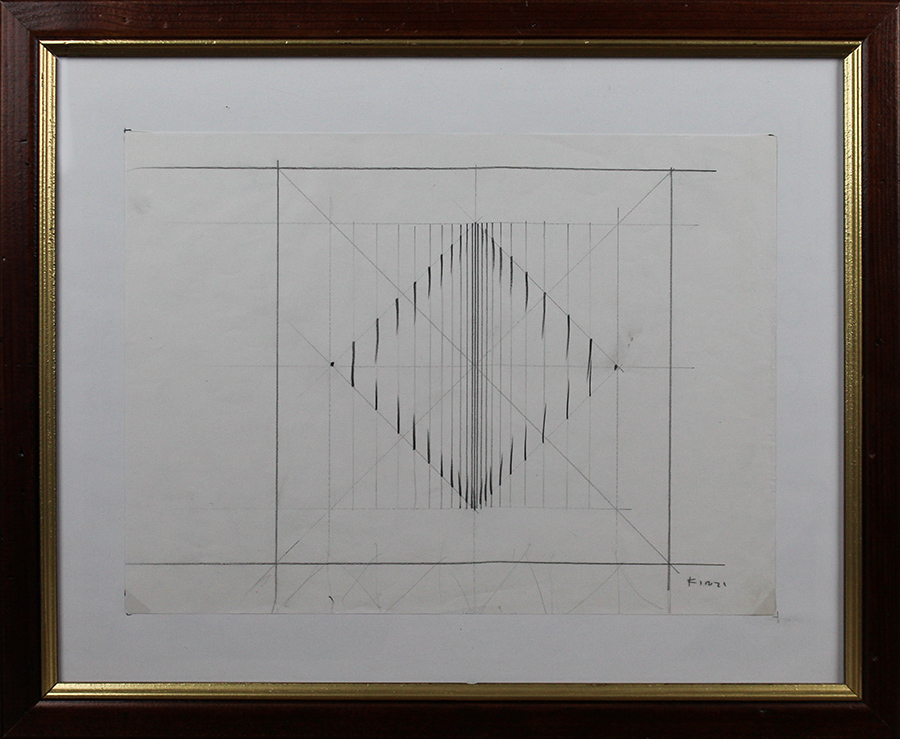 ENNIO FINZI, Senza titolo, Anni '70 (71-72), Lapis su carta, Dim. 22x28, Opera Archiviata presso l'Archivio "Ennio Finzi" con N° Archivio: 100618CA604, Al fronte: firmato in basso a destra, Opera con cornice