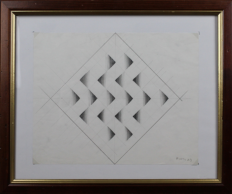 ENNIO FINZI, Senza titolo, 1973, Lapis su carta, Dim. 22x28, Opera Archiviata presso l'Archivio "Ennio Finzi" con N° Archivio: 100618CA599, Al fronte: datato e firmato in basso a destra, Opera con cornice