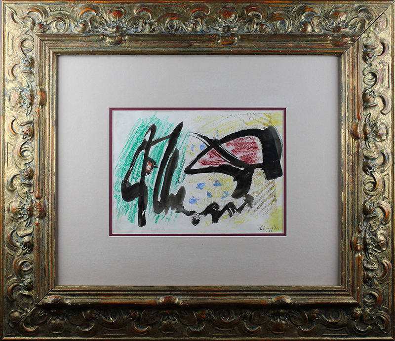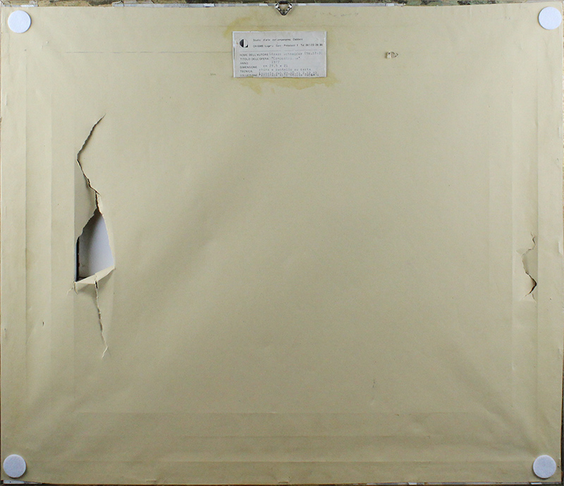GERARD SCHNEIDER, "Composizione", 1977, China e pastelli su carta, Dim. 20,8x29,5, Opera accompagnata da autentica dell'Artista su foto con N° 1243 e certificato di "Farsetti Arte" con N° 64025, Al verso: etichetta "Studio d'Arte contemporanea Dabbeni", Opera esposta dal 28-10 al 2-12-82 Personale allo Studio Ddabbeni, Al fronte: firmato e datato in basso a destra, Opera con cornice