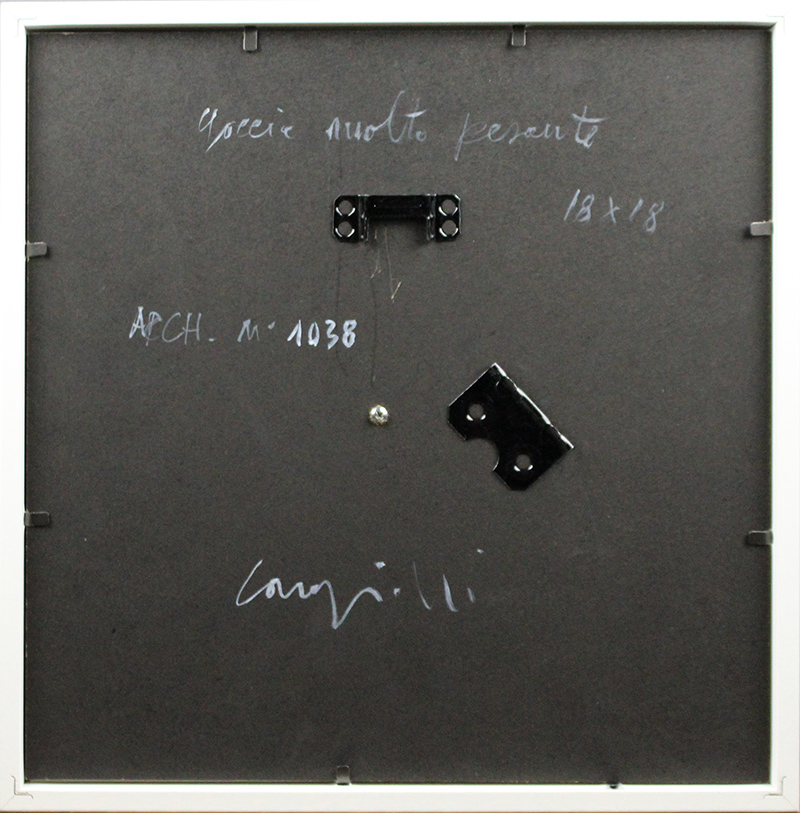 CLAUDIO CARGIOLLI, "Goccia molto pesante", Anni '2000, Tecnica mista su cartoncino, Dim. 18x18, Opera Archiviata con N° 1038, Al fronte: titolo in alto al centro e firmato in basso a sinistra, Opera con cornice