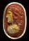 The hero is depicted with the head in profile and the shoulder seen from behind, slightly in three-quarter. The head is covered by the leontea, which goes down to the back; the paw rests on his shoulder. The profile is marked, beardless. Exceptional use of the two colors of the stone; the yellow part is used strictly for the face, neck and shoulder of Hercules; his hair and the leontea are red. The cameo is mounted in a gold frame.