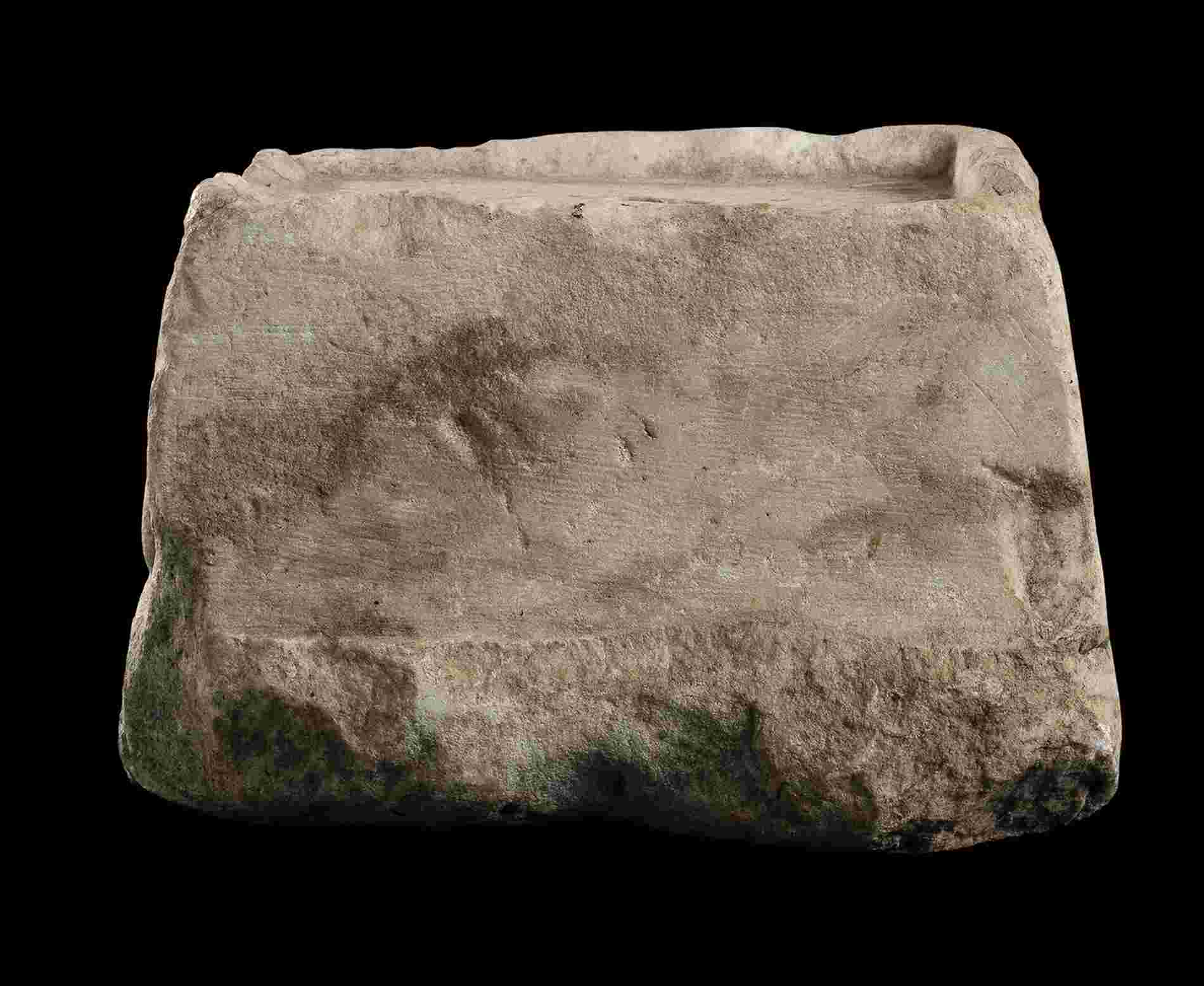 A model of a Temple Podium, likely the stand belonging to a cult image perhaps linked to the sea; with a frontal staircase, dolphins and sea monsters on sides.
