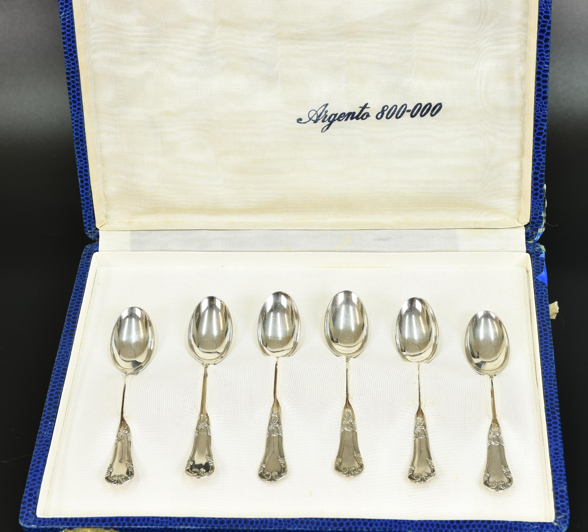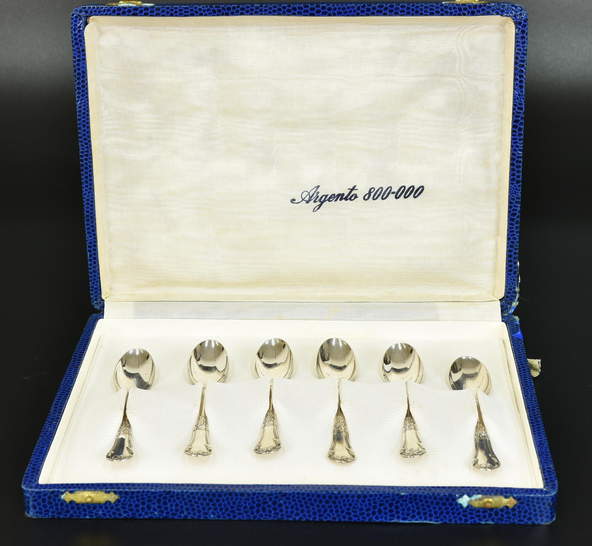 LOTTO DI POSATE IN ARGENTO composto da sei cucchiaini da caffe entro scatola...