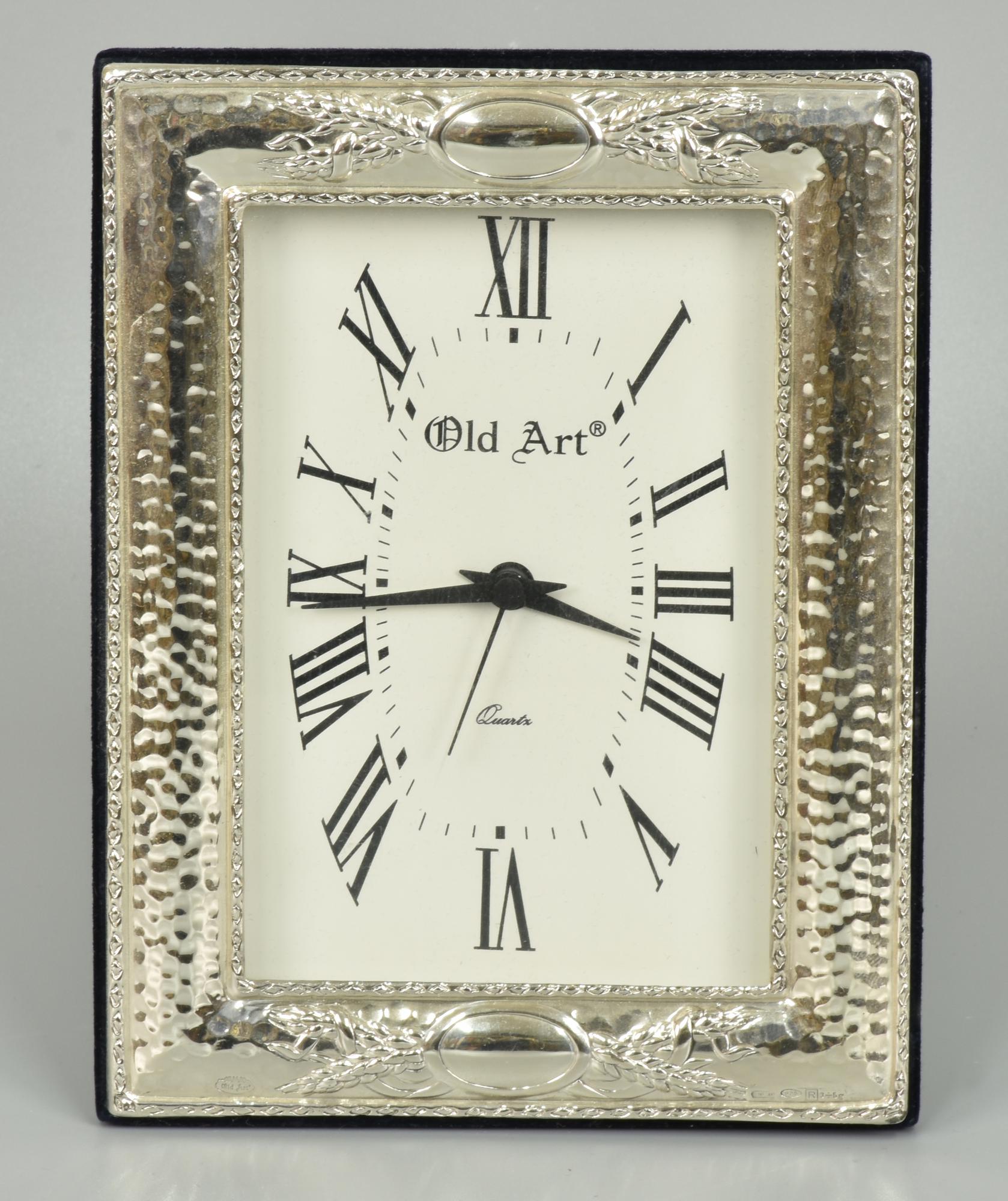 OROLOGIO DA TAVOLO Con cornice in argento Sterling 925, marca Old Art,...