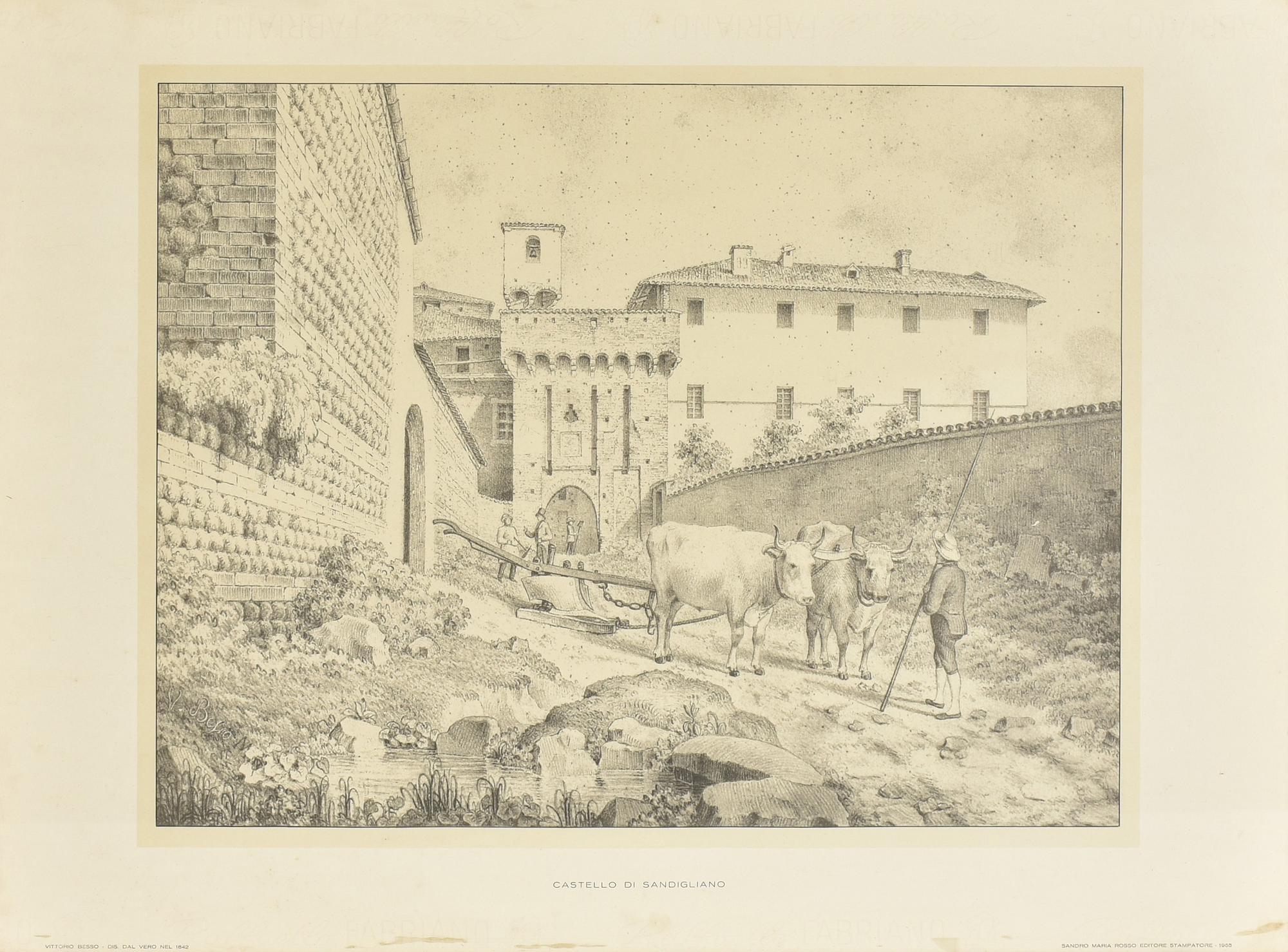 CASTELLO DI SANDIGLIANO stampa su carta Fabriano, cm 50x65 Editore Sandro...
