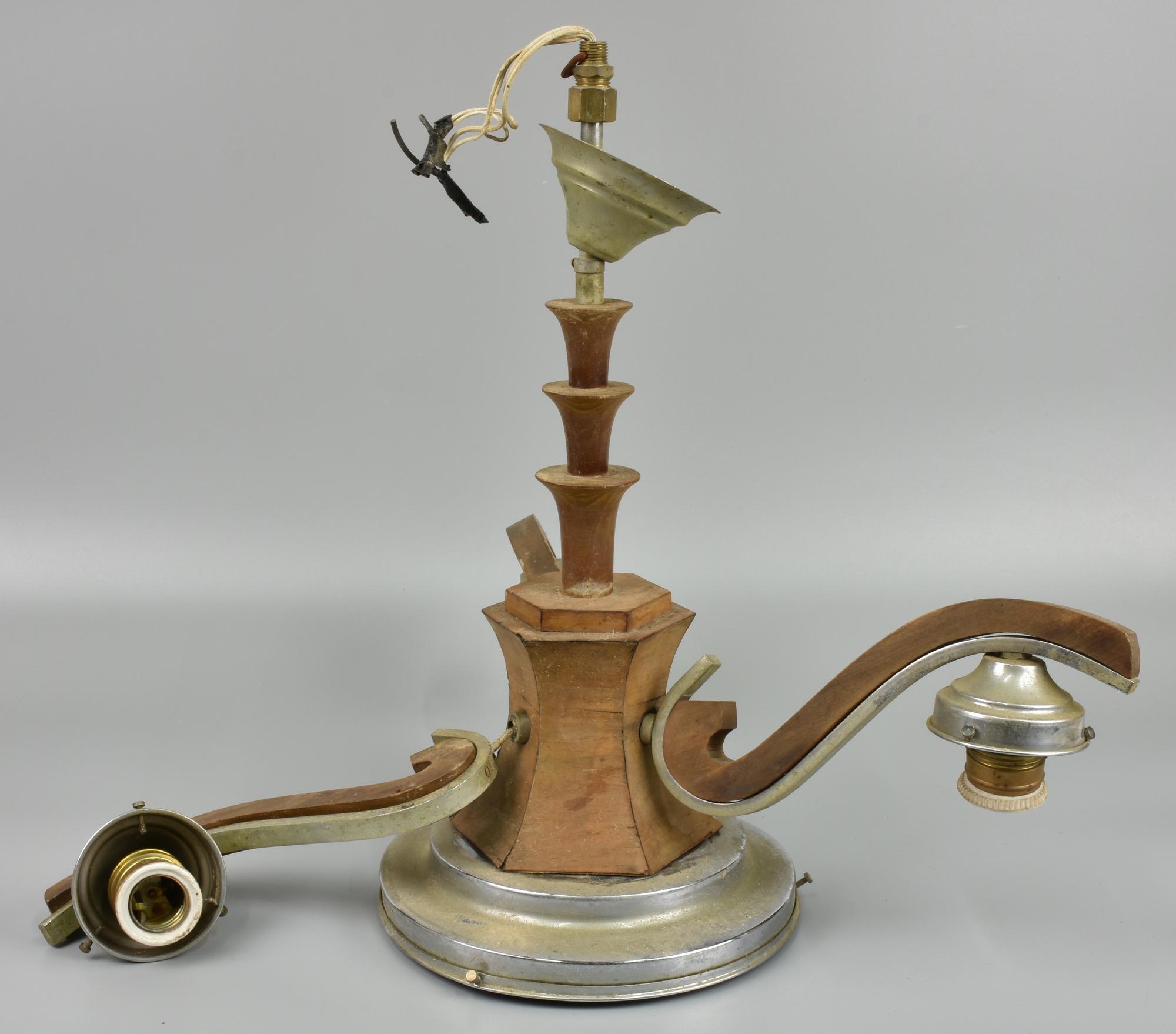 LAMPADARIO DECO in legno e alluminio, a 4 luci h 43 cm, diam 45 cm Italia,...