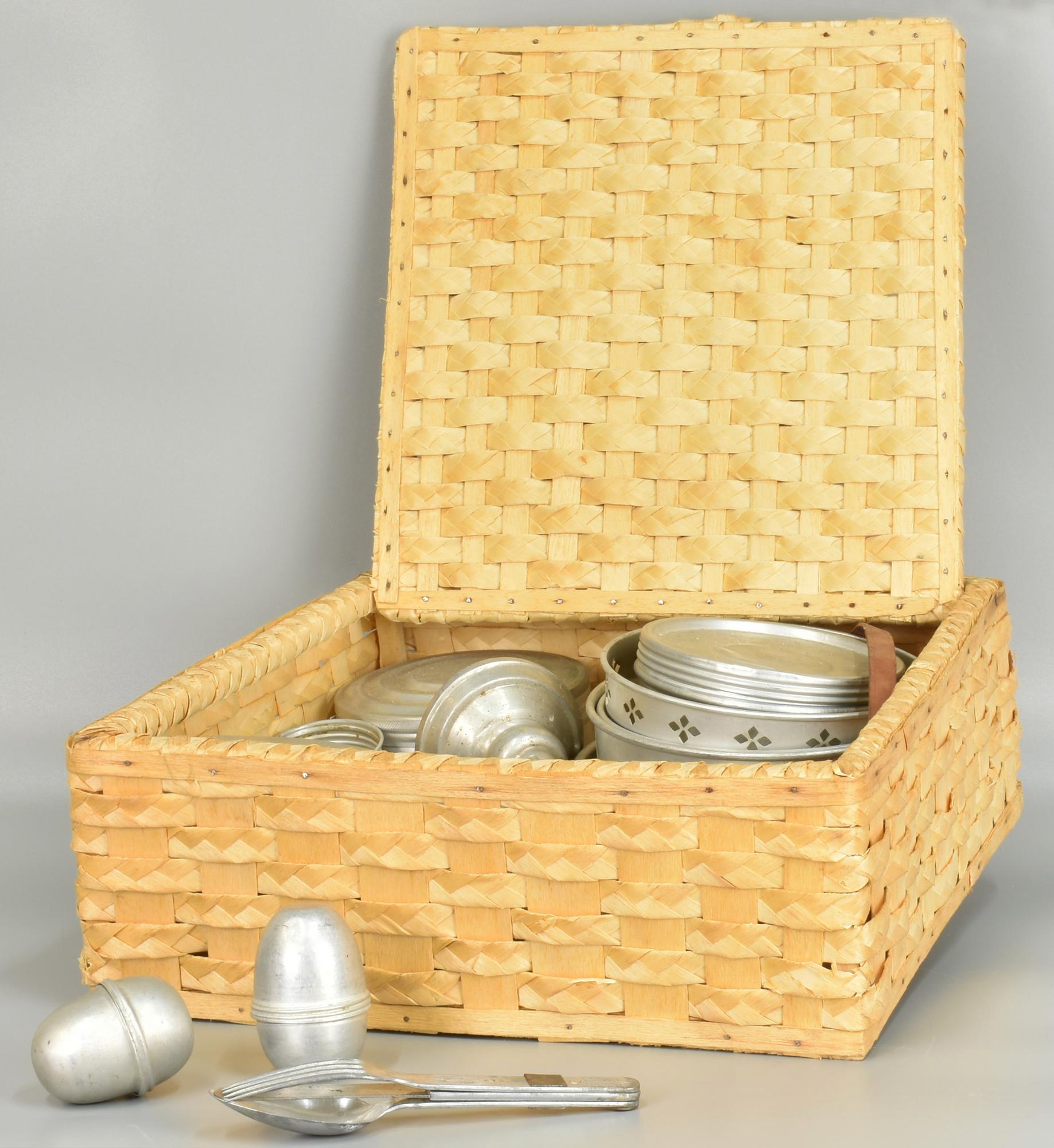 CESTINO DA PICNIC completo di stoviglie in latta cm 13x38