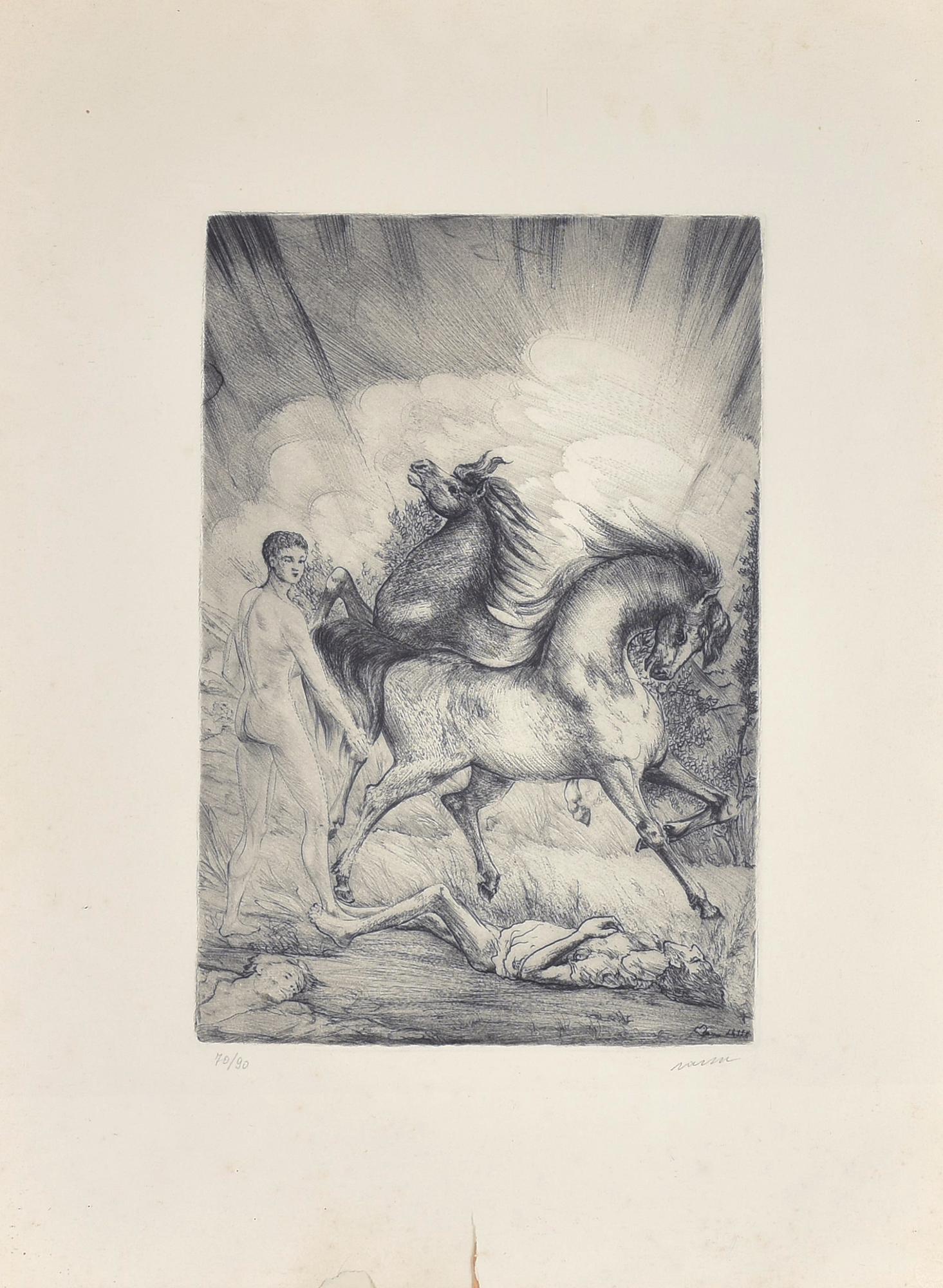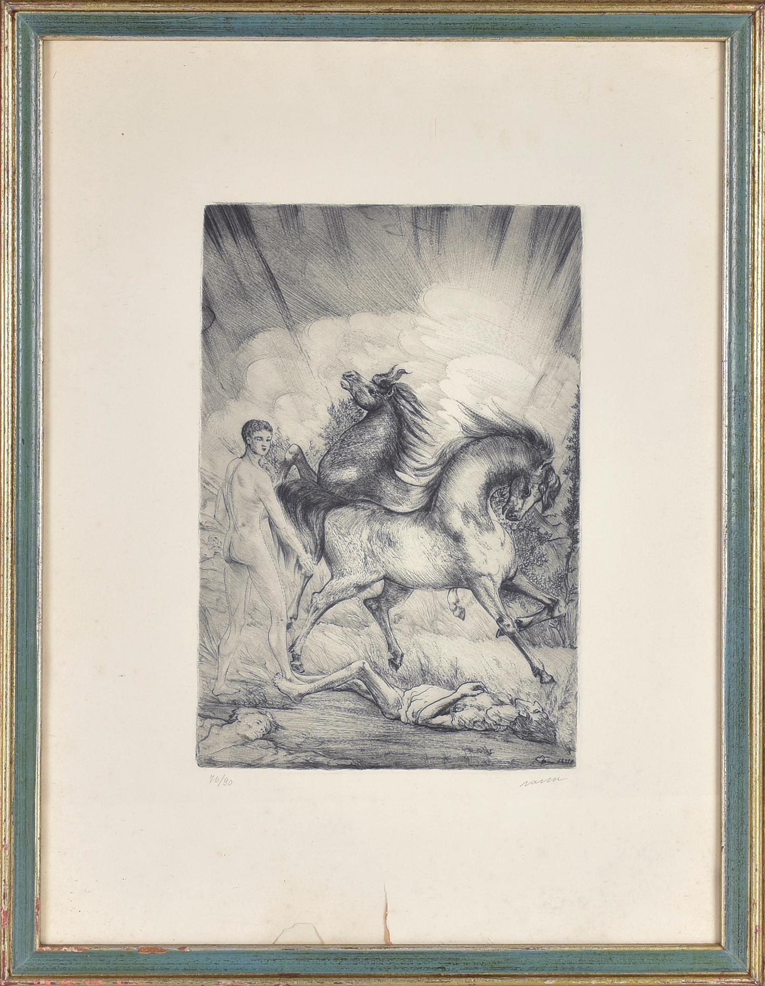 Aligi Sassu SENZA TITOLO acquaforte su carta, battuta cm 36x24, su foglio...