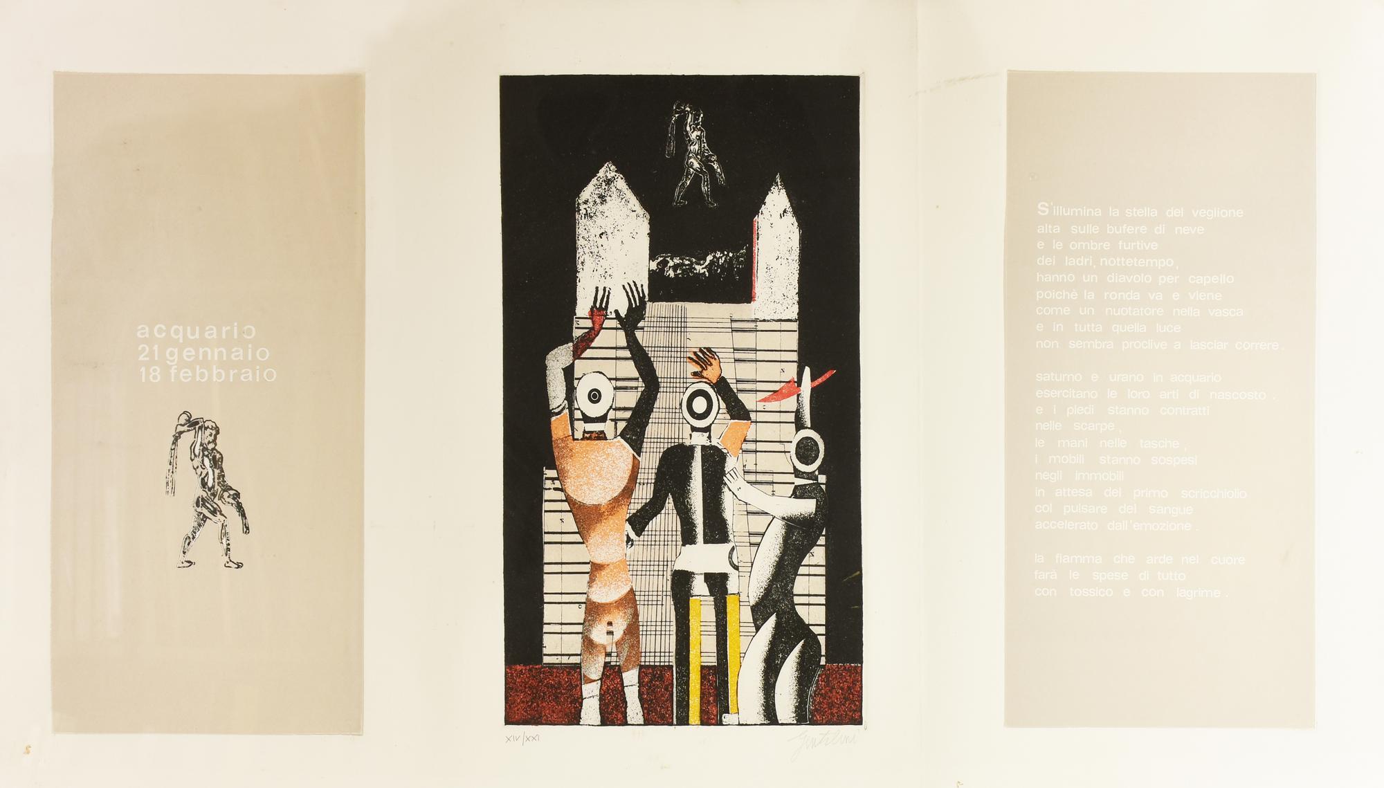 Franco Gentilini ACQUARIO lotto di 3 incisioni su carta, battute cm...