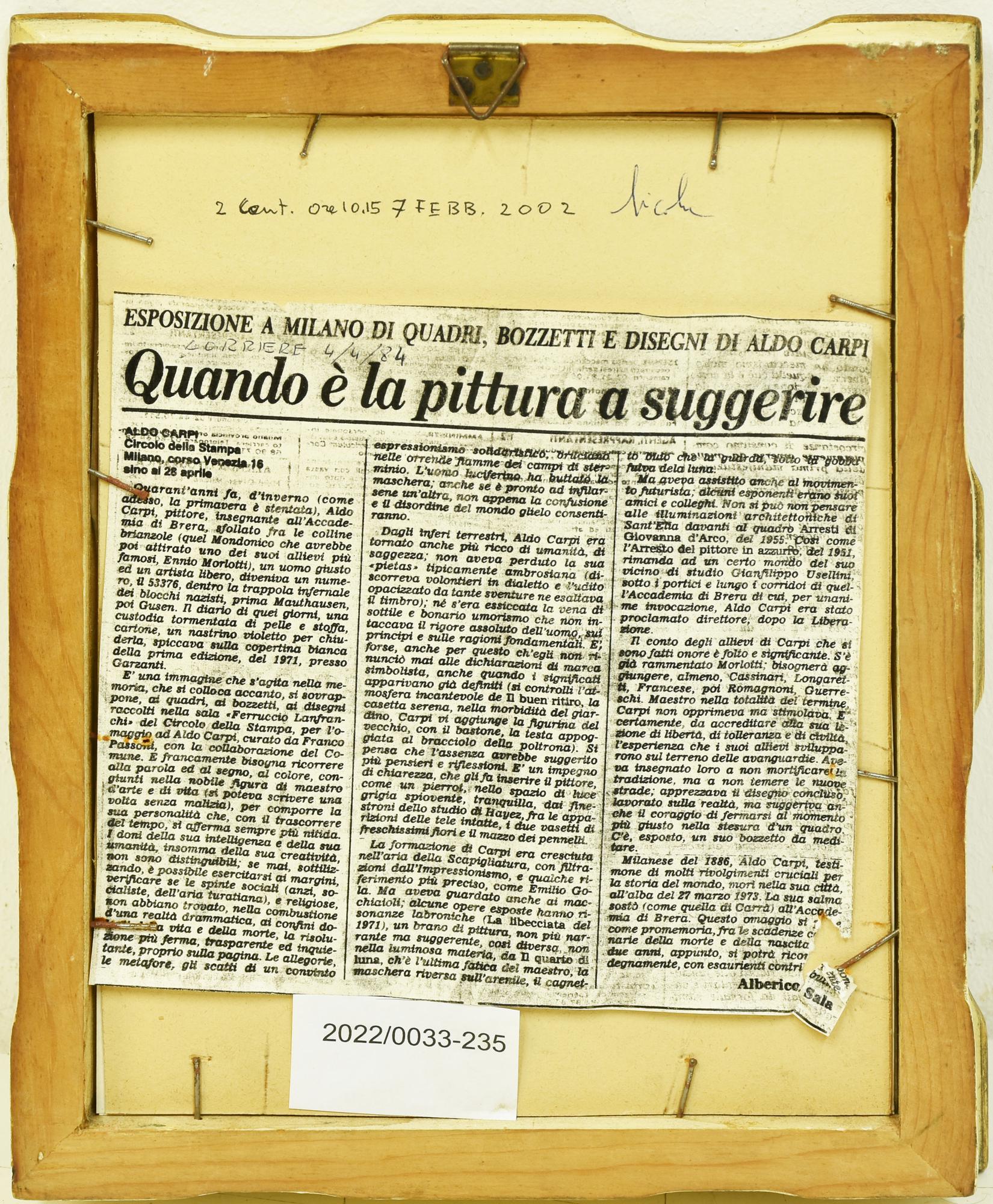 Lotto 73 | Aldo Carpi SENZA TITOLO matita su carta, cm 16x11 firma e data eseguita nel...