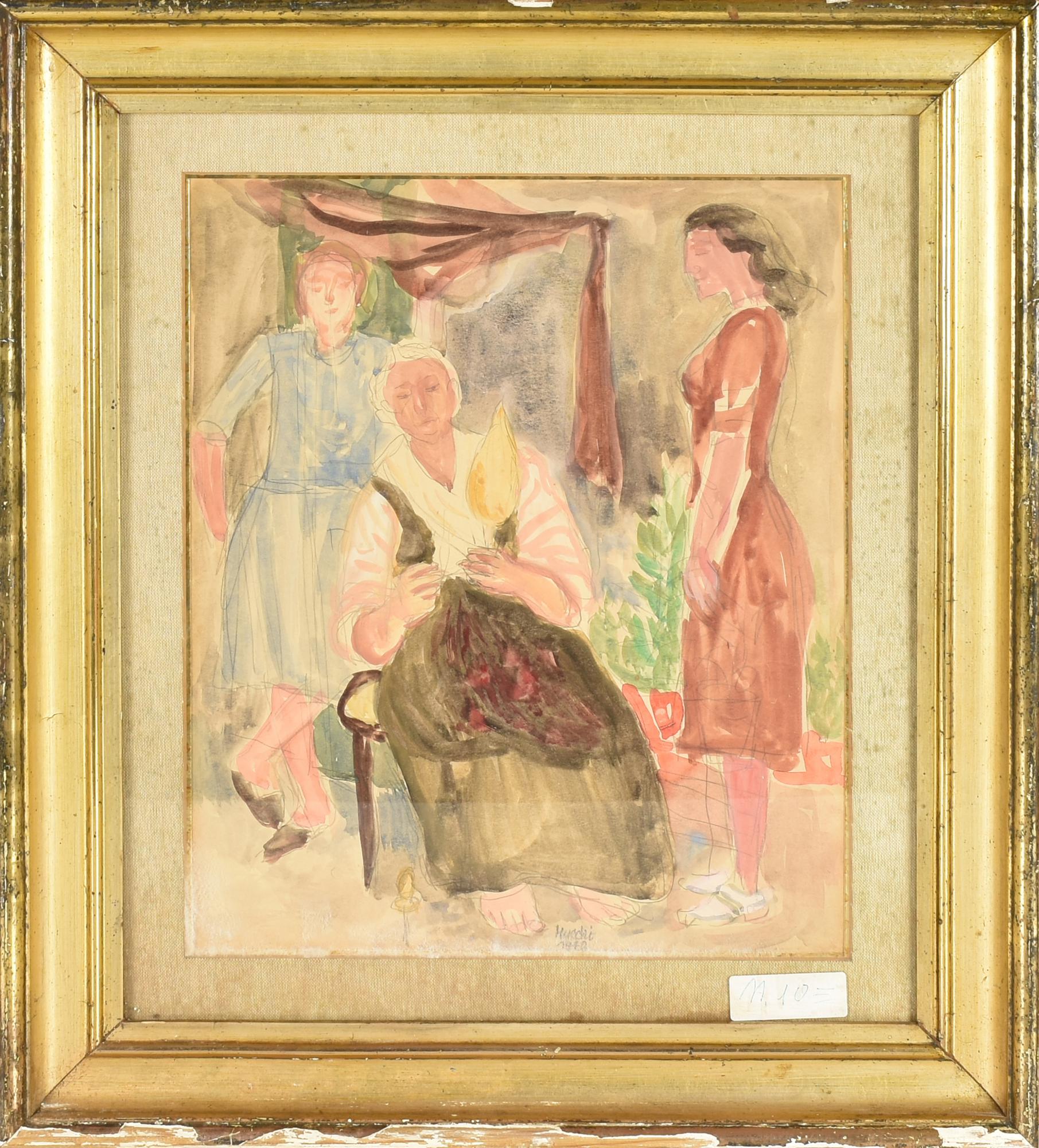 Gabriele Mucchi LA FILATURA tecnica mista su carta, cm 38x32 firma e data...