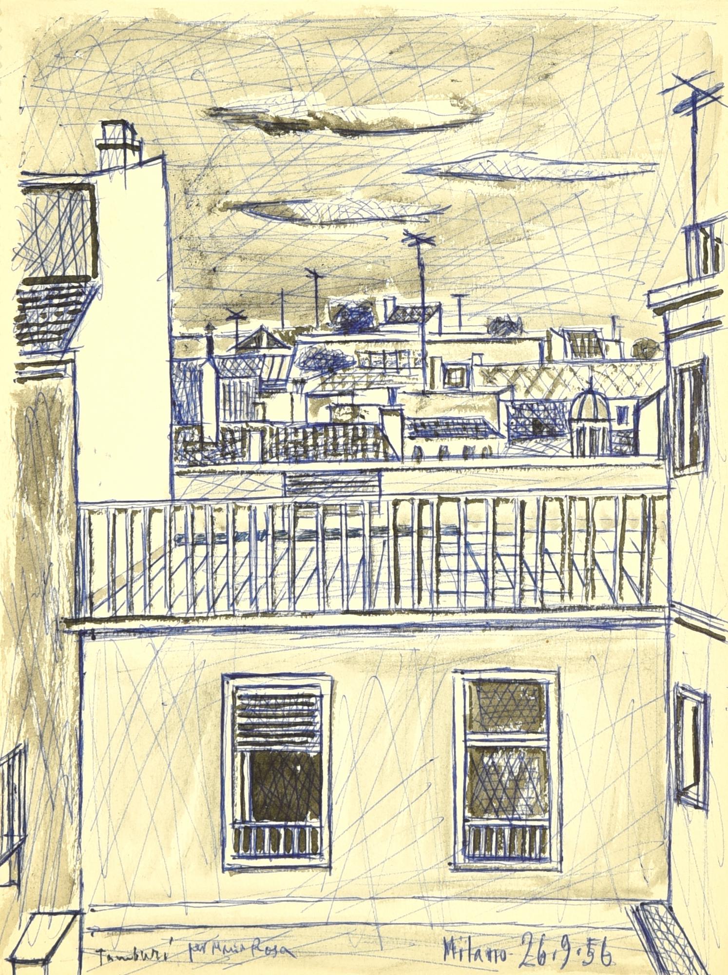 Orfeo Tamburi MILANO penna e china acquarellata su cartoncino, cm 27x20,5...