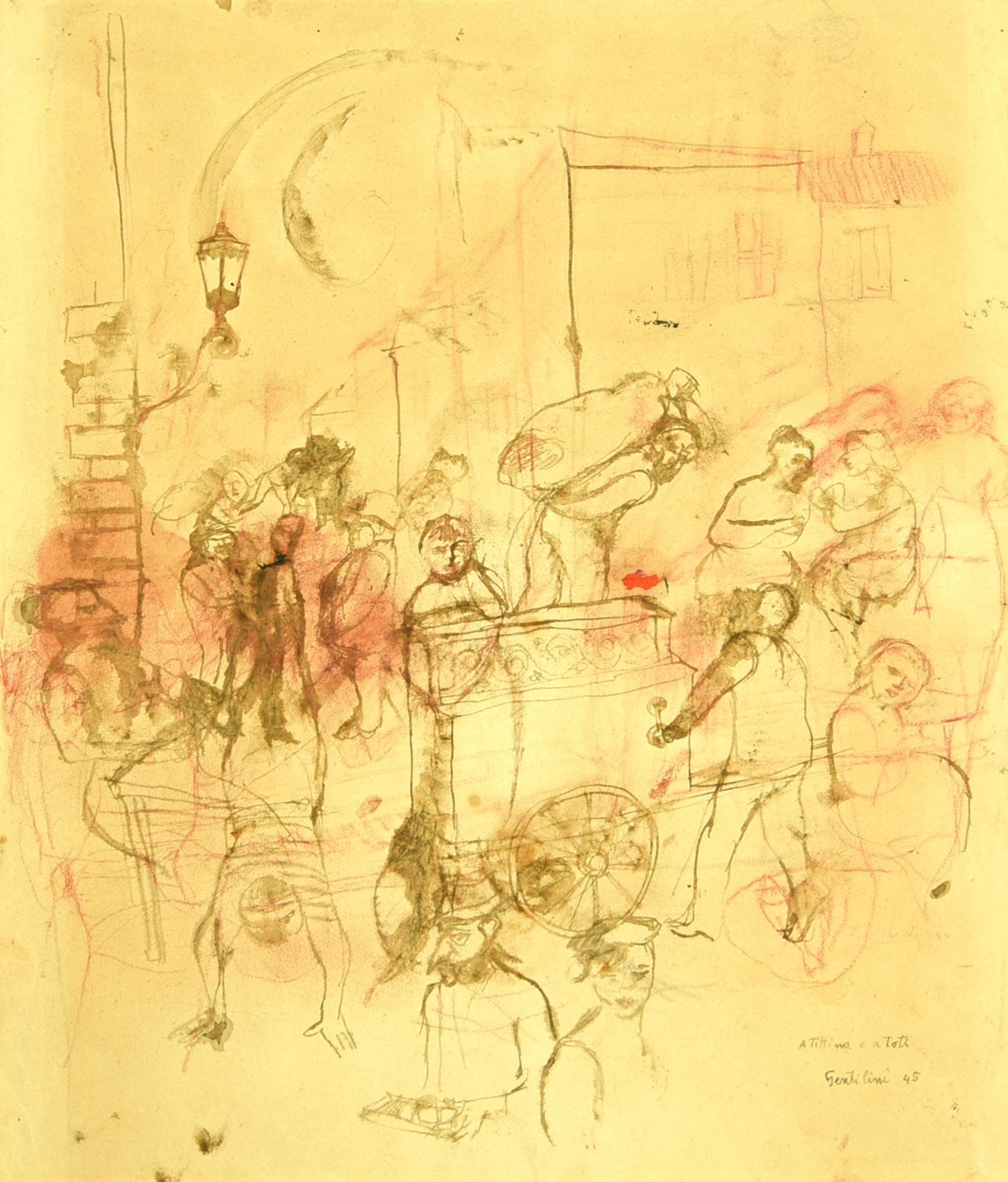 Franco Gentilini ALLA FIERA china e sanguigna acquerellata su carta, cm...