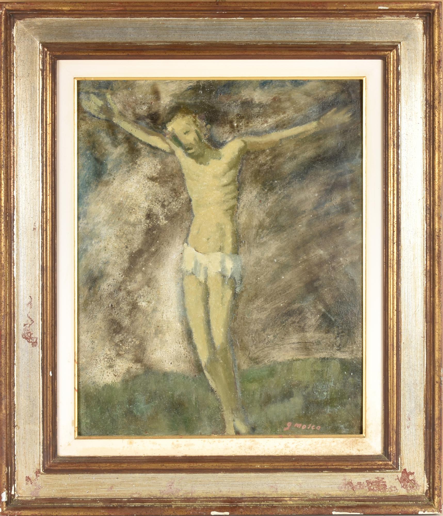 Lotto 137 | Guido Mosca CRISTO CROCIFISSO olio su faesite, cm 48,5x38,5 firma sul retro:...