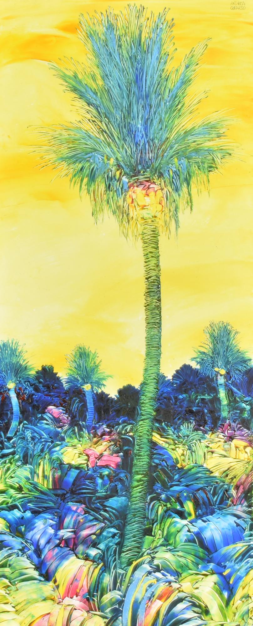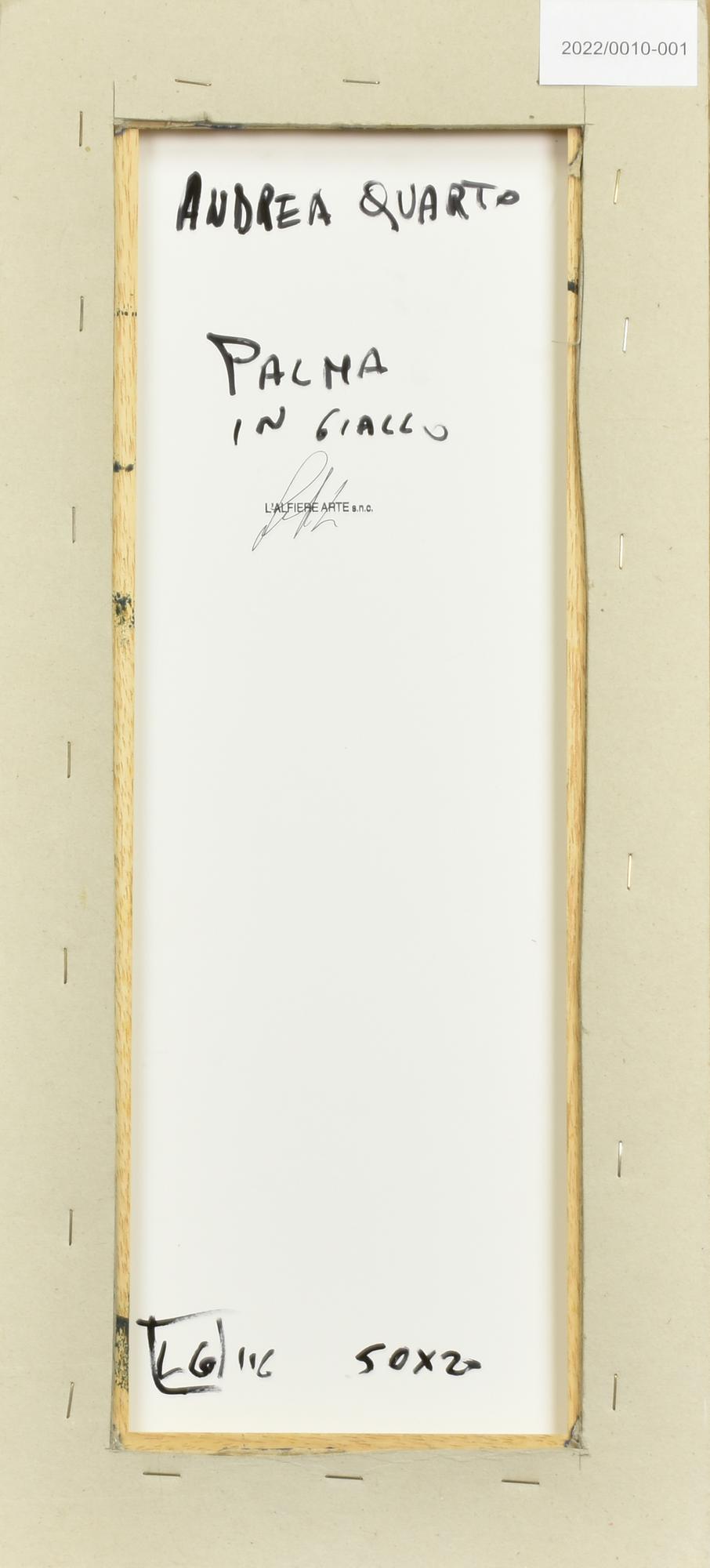 Andrea Quarto PALMA IN GIALLO olio su cartone, cm 50x20 firma sul retro:...