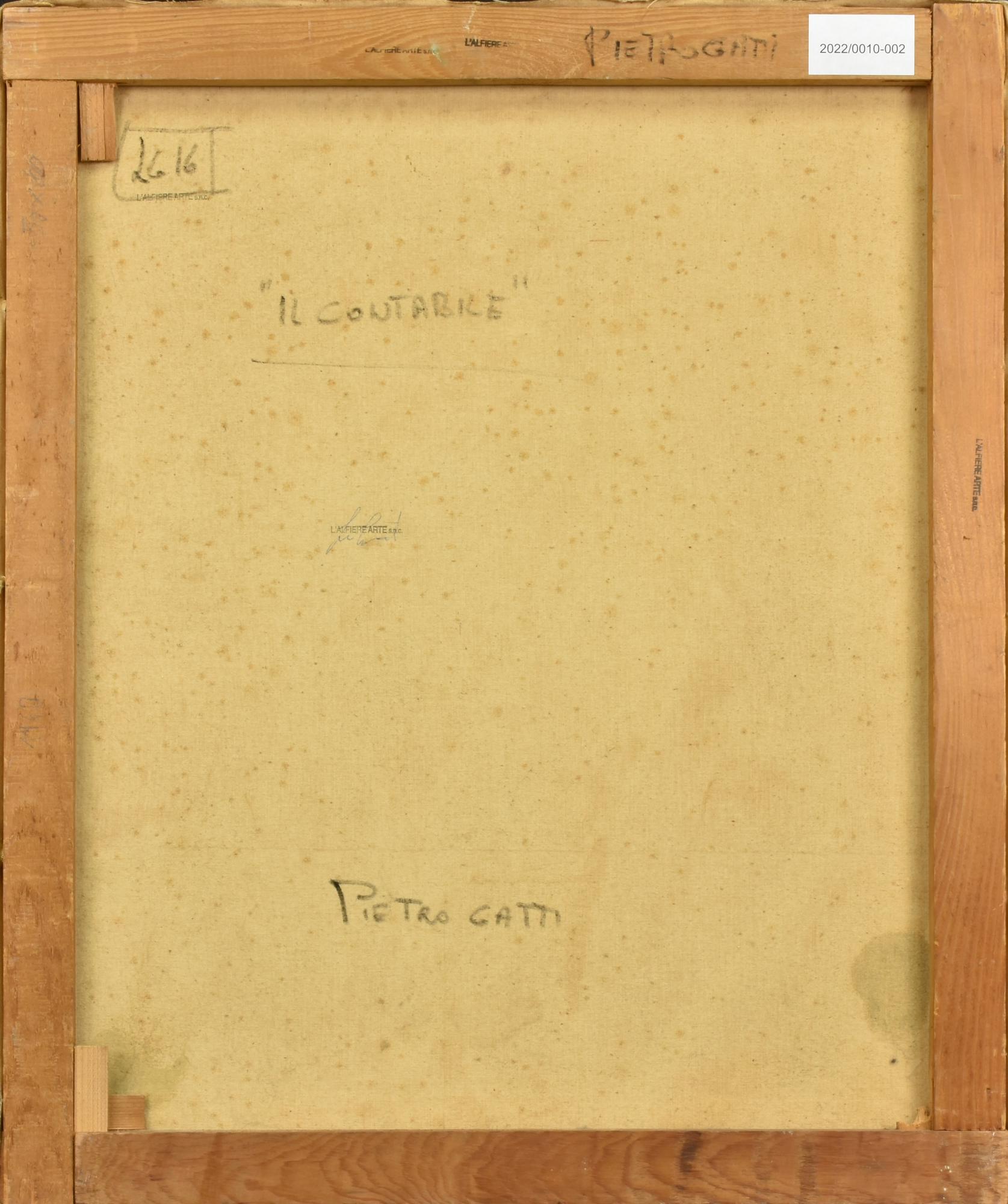 Pietro Gatti IL CONTABILE olio su tela, cm 60x50 firma sul retro: firma,...
