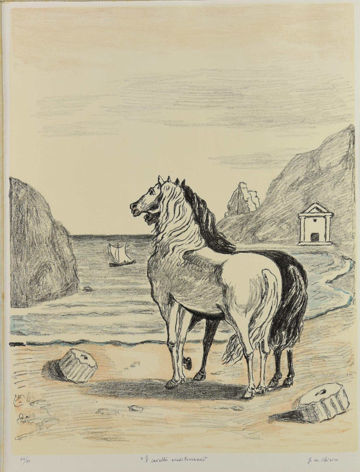 Giorgio De Chirico I CAVALLI MEDITERRANEI litografia, cm 71x53; es. 64/80...