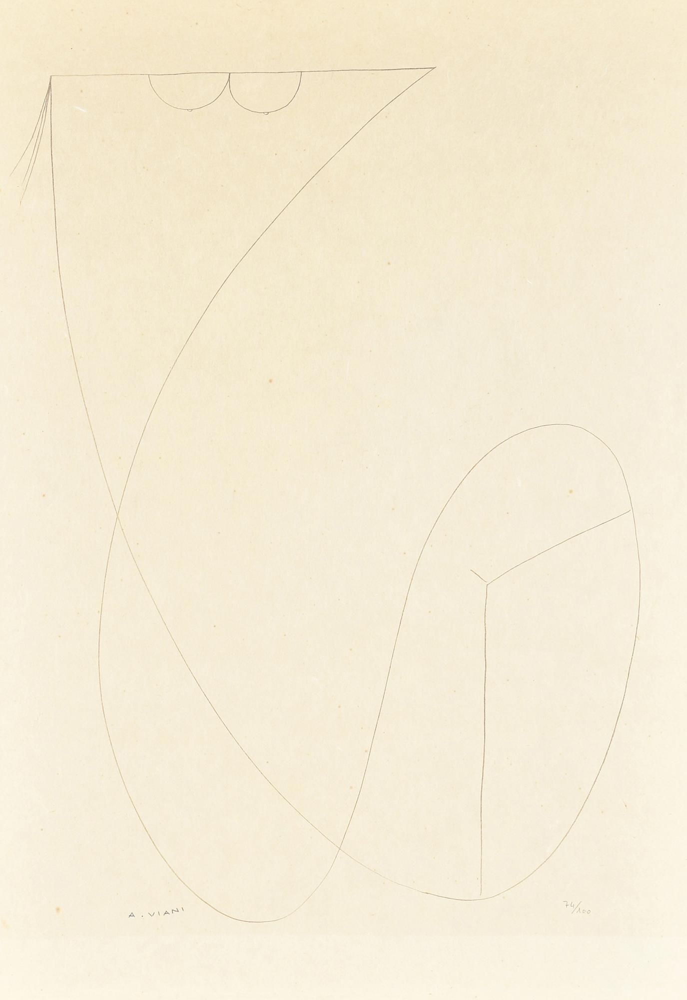 Alberto Viani NUDO FEMMINILE litografia su carta di riso, cm 63x44; es....