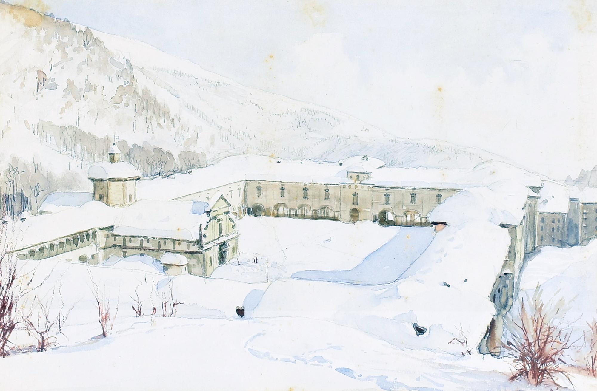Francesco Monzeglio OROPA acquarello su carta Fabriano, cm 31x47 firma...