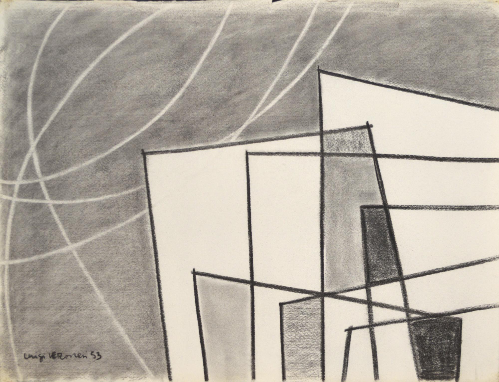Luigi Veronesi STRUTTURA N.3. carboncino e pastello su cartone, cm 52x69 1953...