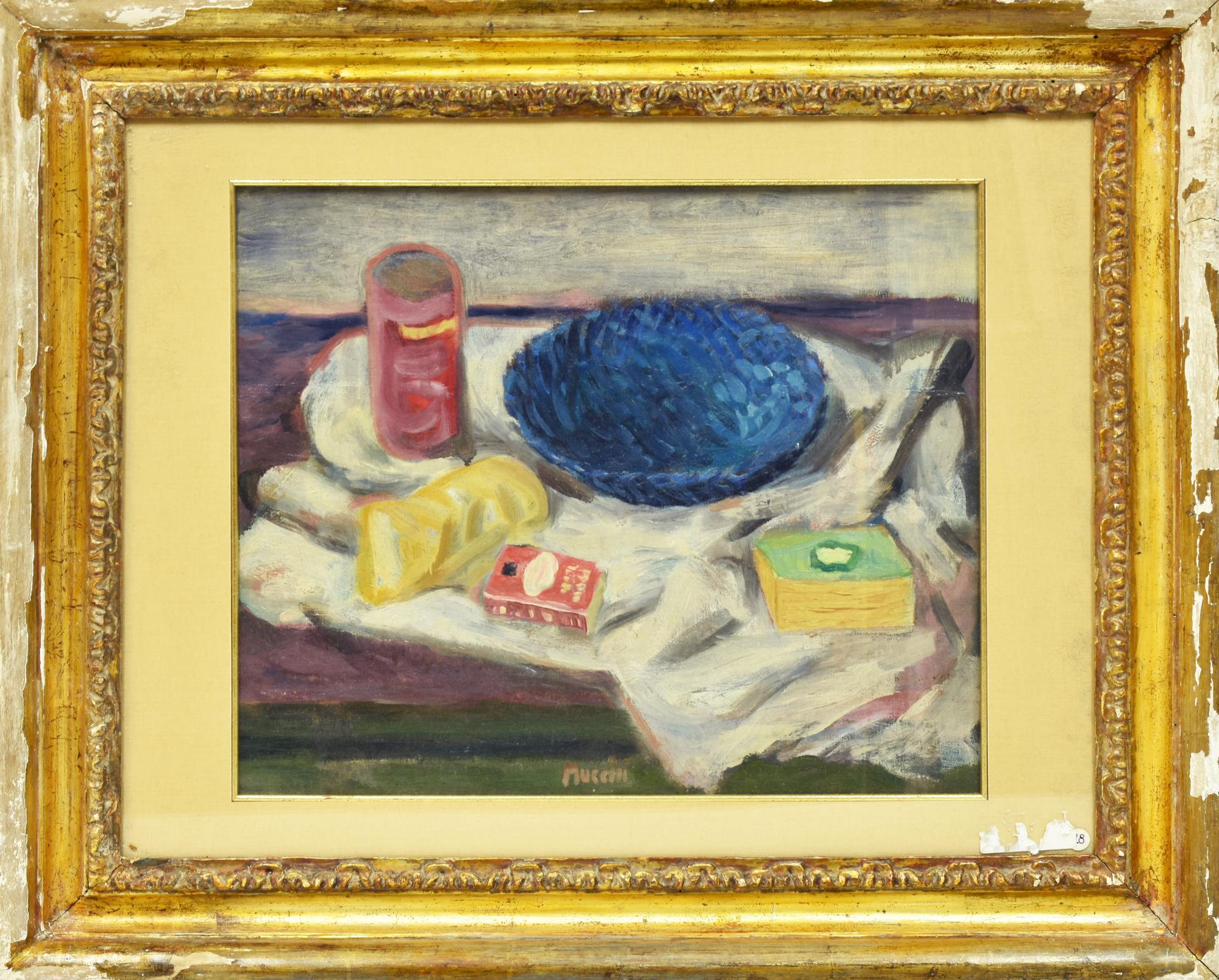 Gabriele Mucchi NATURA MORTA CON PIATTO AZZURRO olio su tela, cm 35x45 firma...