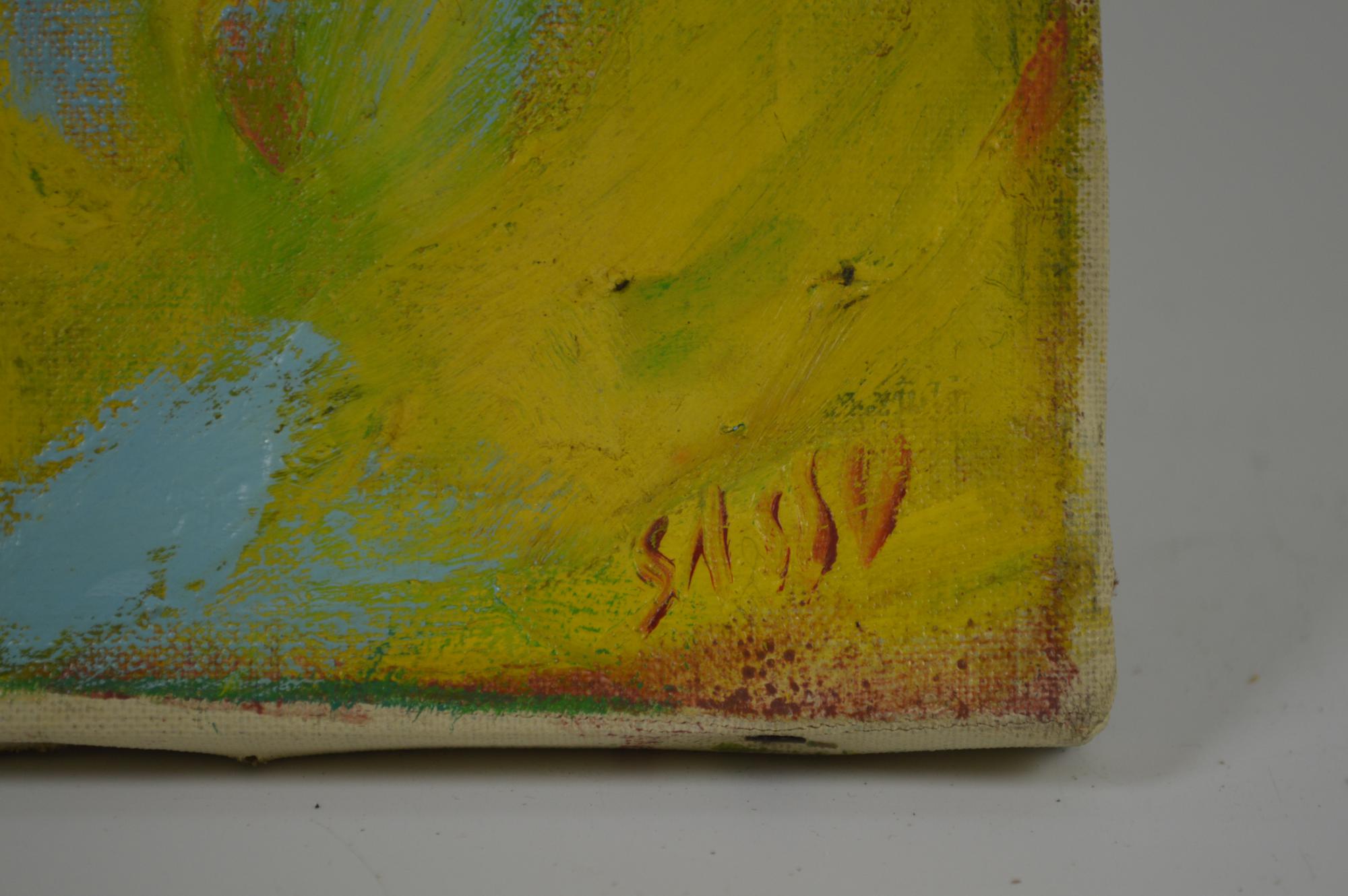 Aligi Sassu IL CAVALLO NEL GRANO olio su tela, cm 30x40 firma sul retro:...