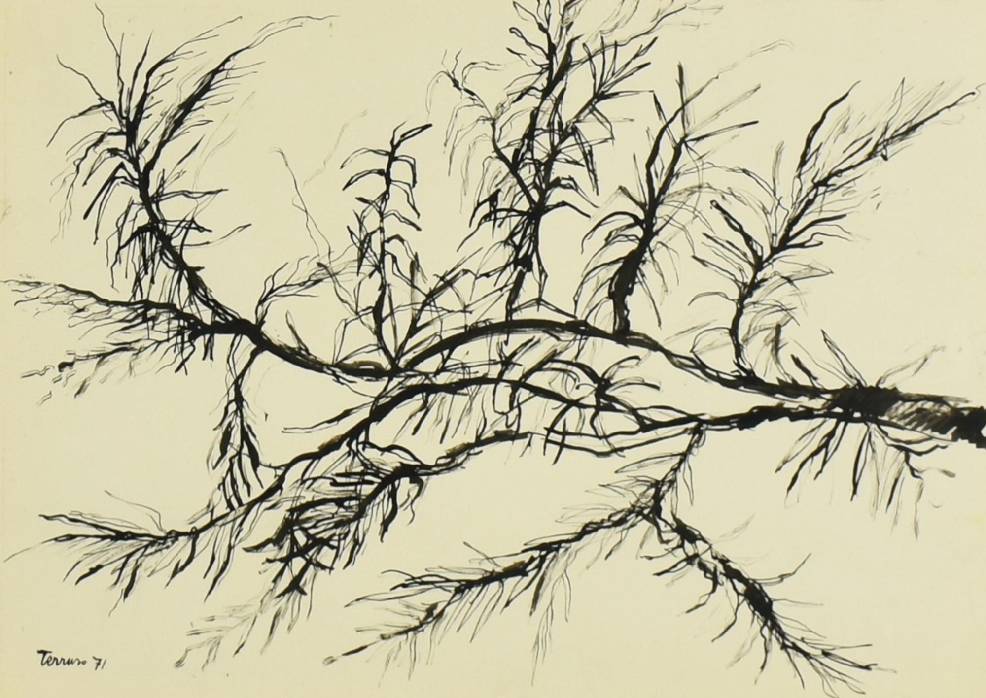 Saverio Terruso ALBERO china su carta, cm 34x48 firma e data eseguito nel 1971