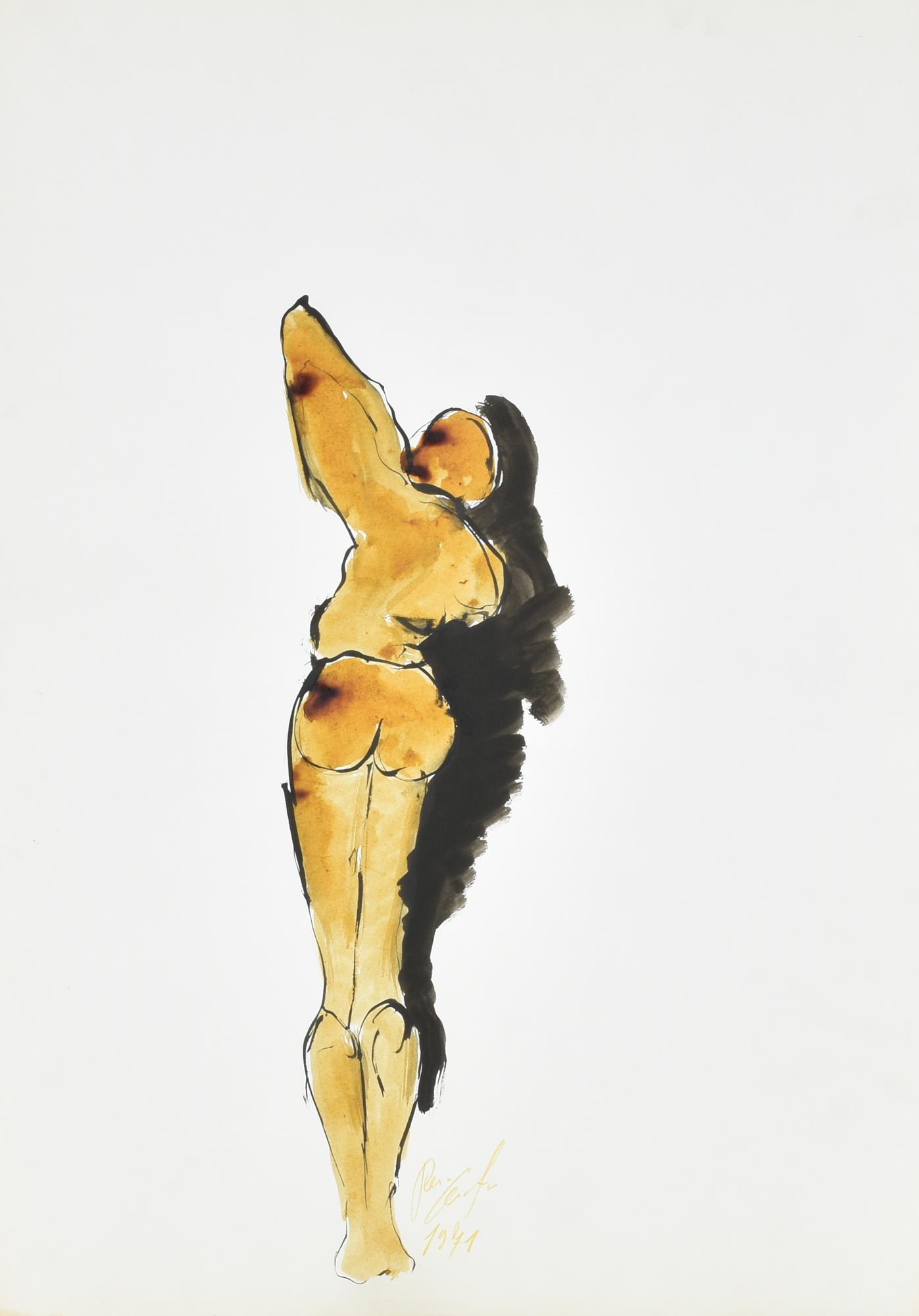 Piero Cerato FIGURA tecnica mista su carta, cm 55x39 firma e data sul retro:...