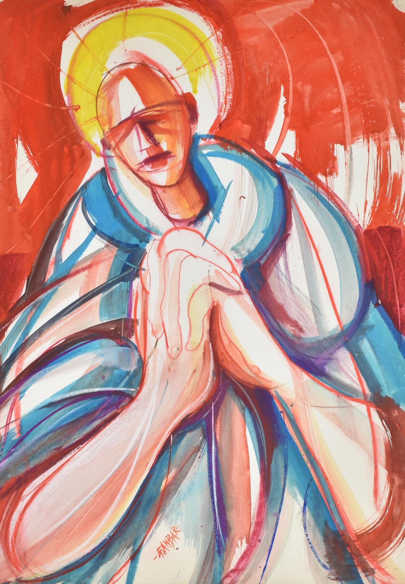 GIANBAR (Gianni Baretta) L'ORANTE tecnica mista su carta, cm 70x50 firma sul...