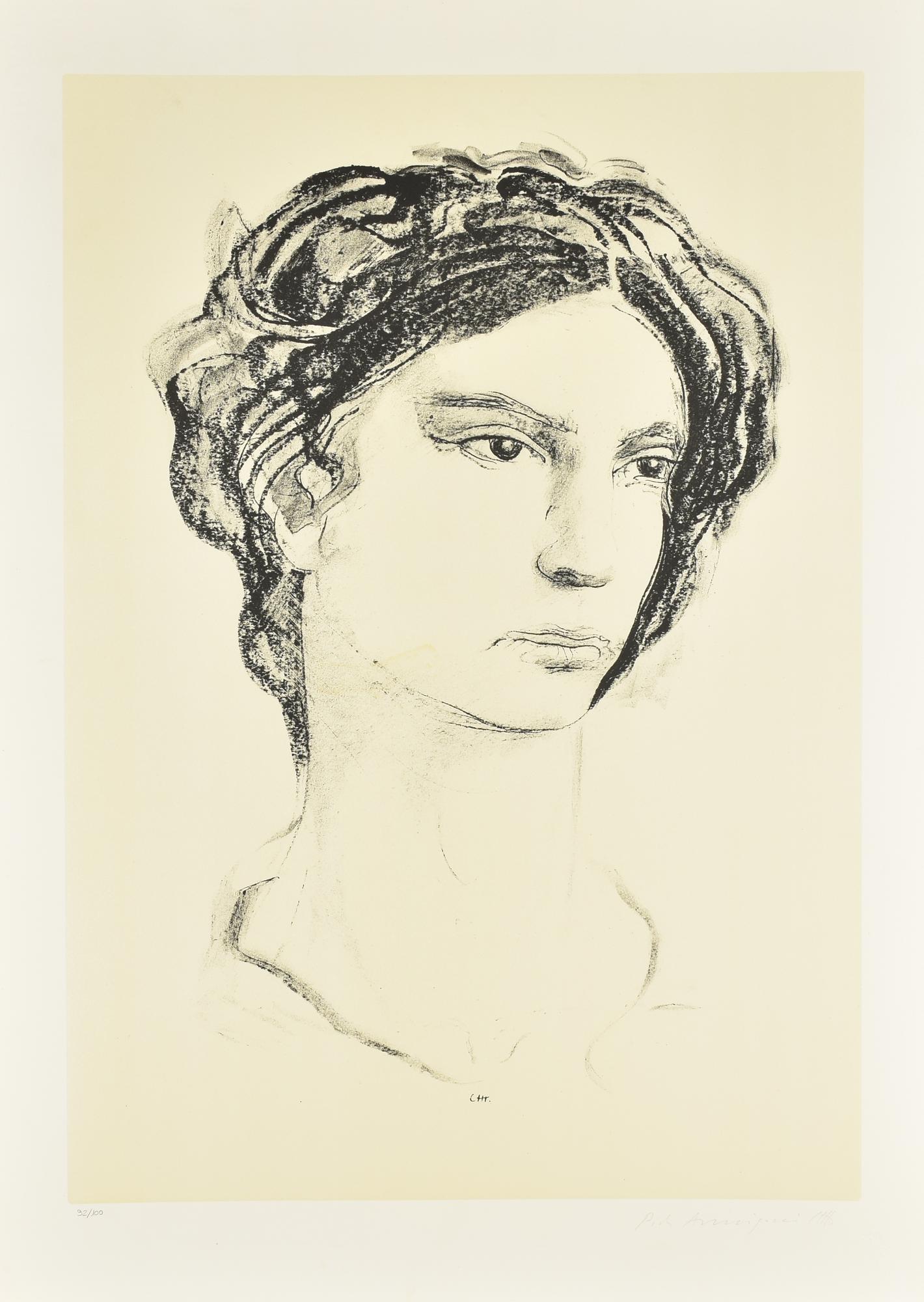 Pietro Annigoni RITRATTO litografia su carta, cm 70x50; es. 92/100 firma e...