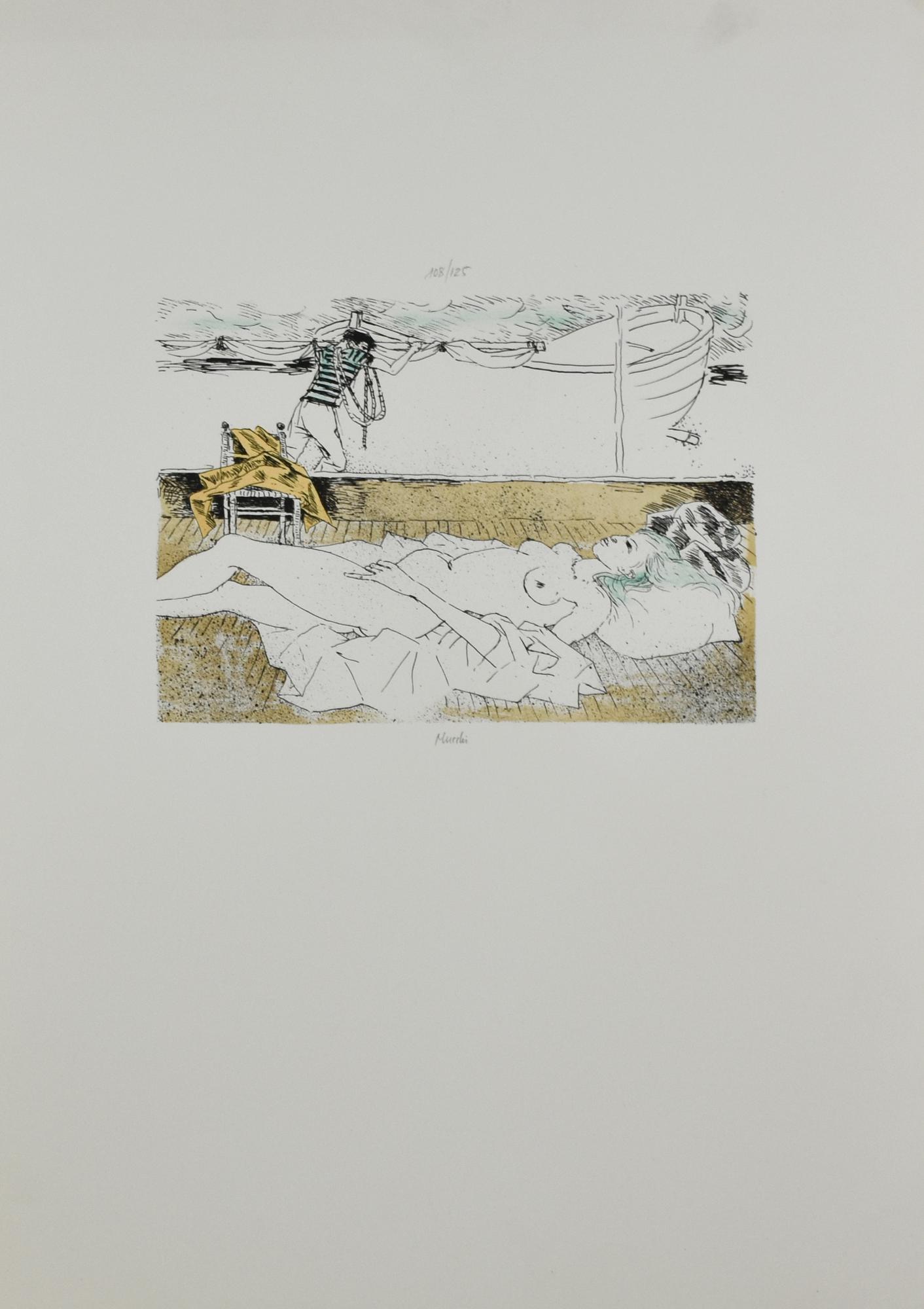 Gabriele Mucchi NUDO SDRAIATO litografia su carta, cm 70x50; es. 108/125 firma