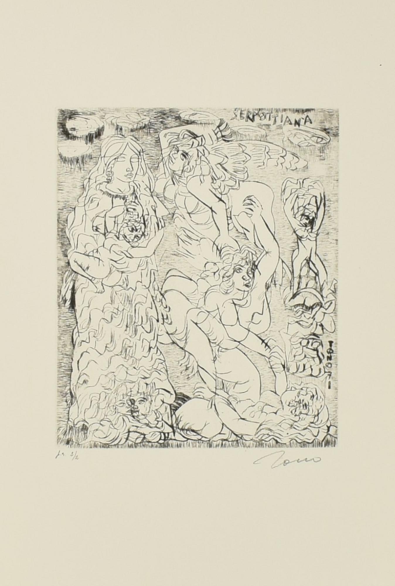 Lotto 77 | Tono Zancanaro SERPOTTIANA acquaforte, cm 28x25,5, su foglio cm 50x34,5; es....