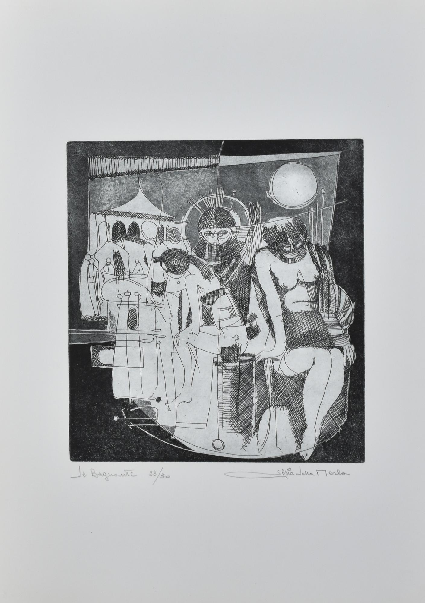 Lotto 107 | Gianni Sesia della Merla LE BAGNANTI incisione su carta, battuta cm 25x22; su...