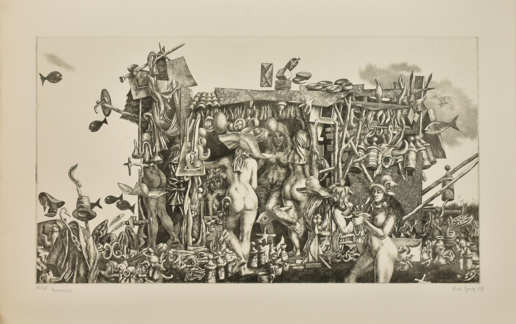 Rudi Gorog AMAZONAS incisione su carta, battuta cm 44x79,5, su foglio cm...