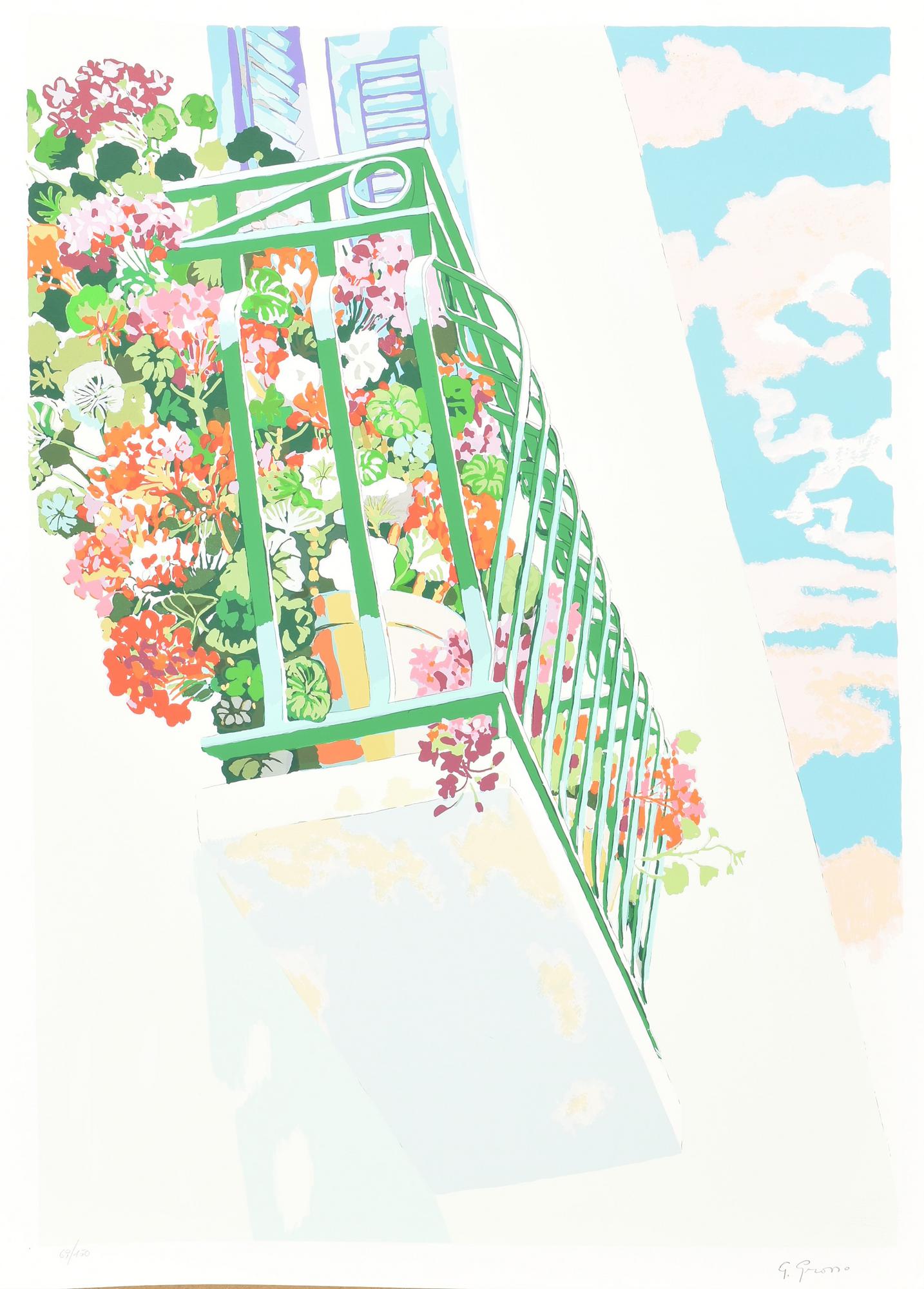 Lotto 143 | Giuseppe Grosso BALCONE FIORITO serigrafia su carta, cm 70x50; es. 69/150 firma