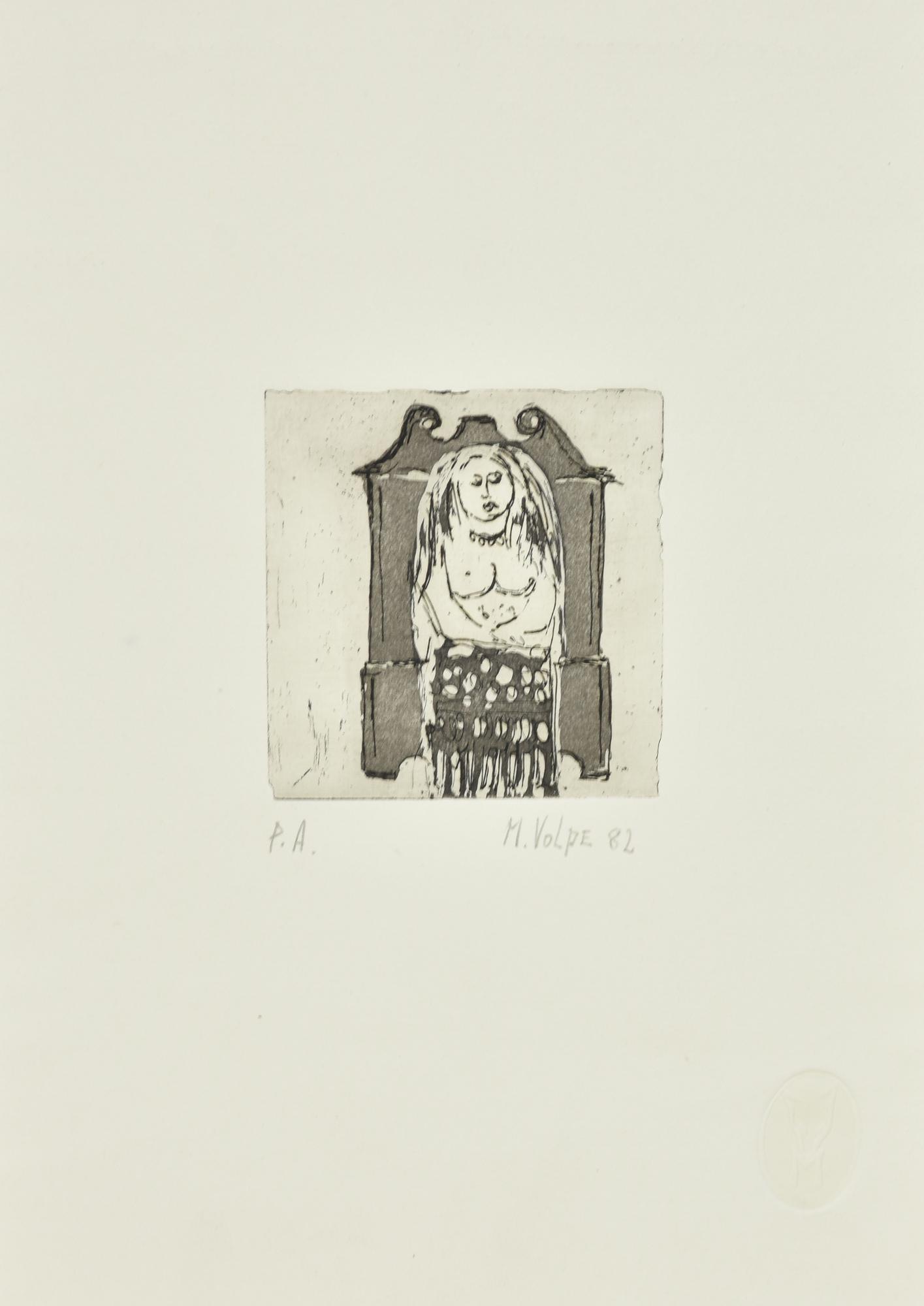 Michele Volpe DONNA SEDUTA incisione su carta, battuta cm 9,5x9, su foglio...