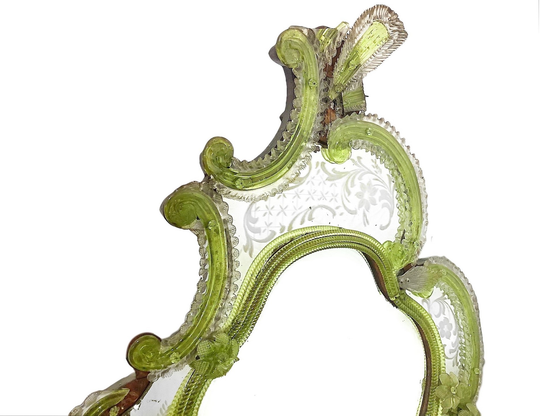 Specchiera in vetro di Murano di colore verde, 19° secolo