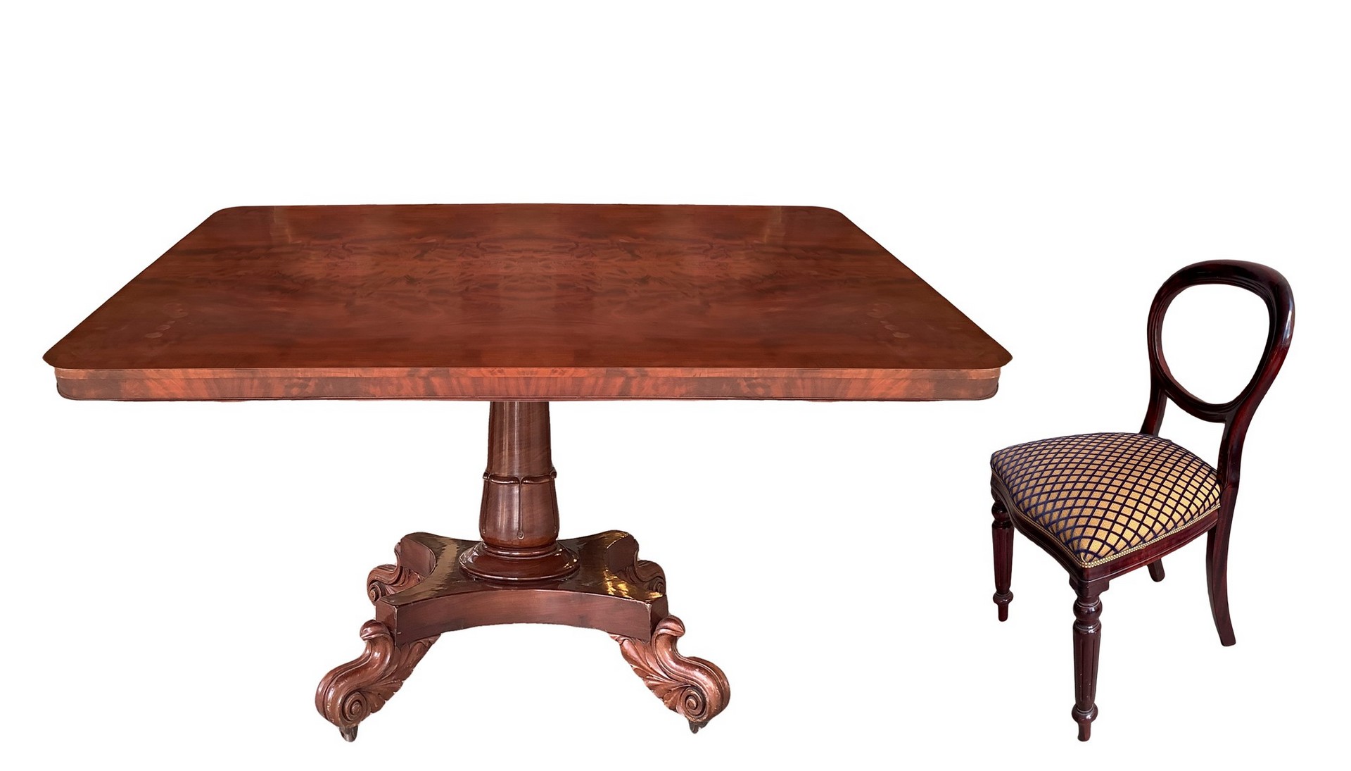 Tavolo da pranzo rettangolare in piuma di mogano con 11 sedie in legno di mogano