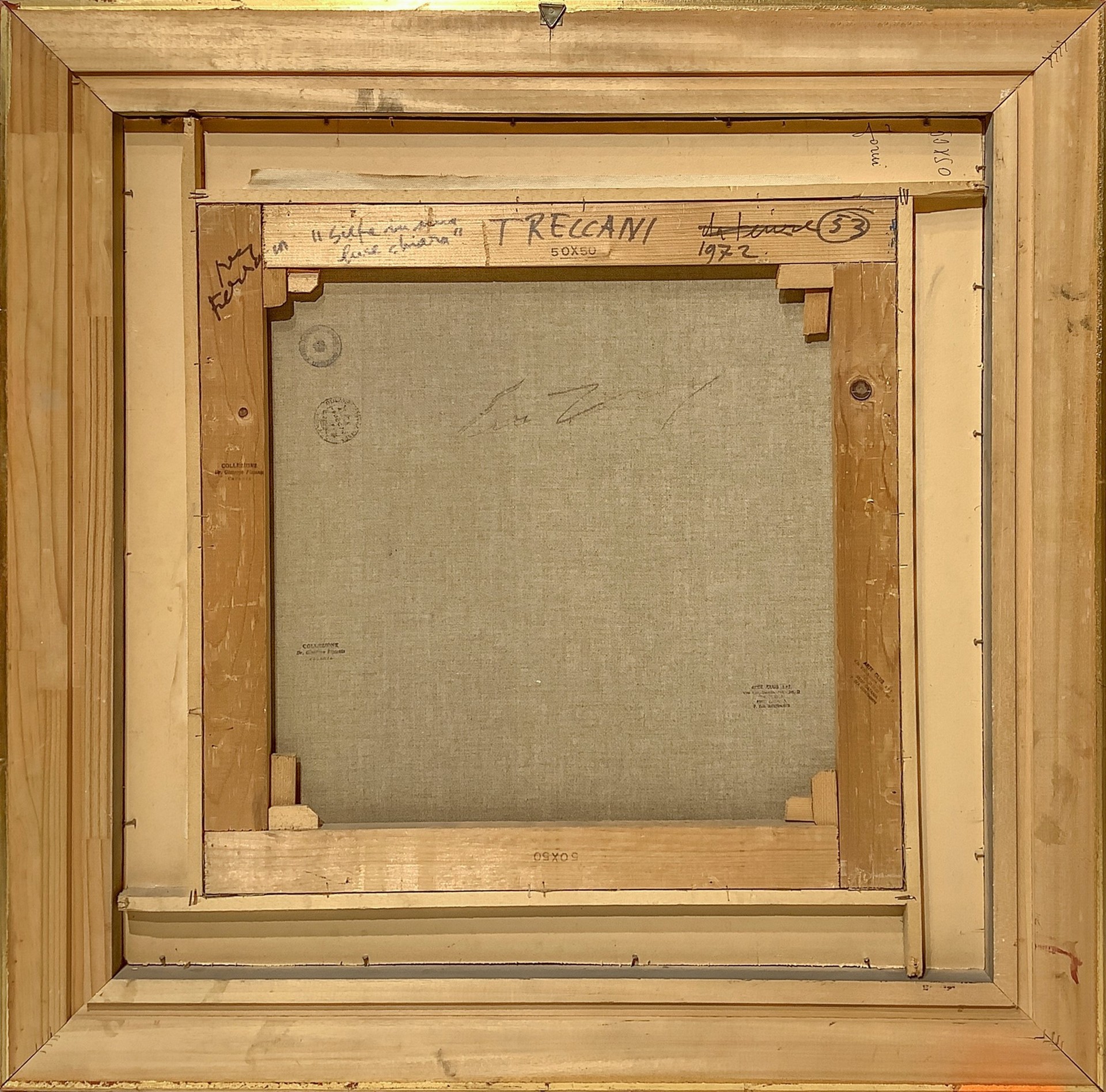 Ernesto Treccani (Milano 1920-Milano 2009) - Siepe in una luce chiara, 1972 in cornice h cm 79x79; senza cornice h cm 50x50 olio su tela Opera firmata in basso a destra. Firmata, datata e titolata a retro. Timbro della galleria Arte Club di Catania sul retro. Autentica dell'artista su fotografia.