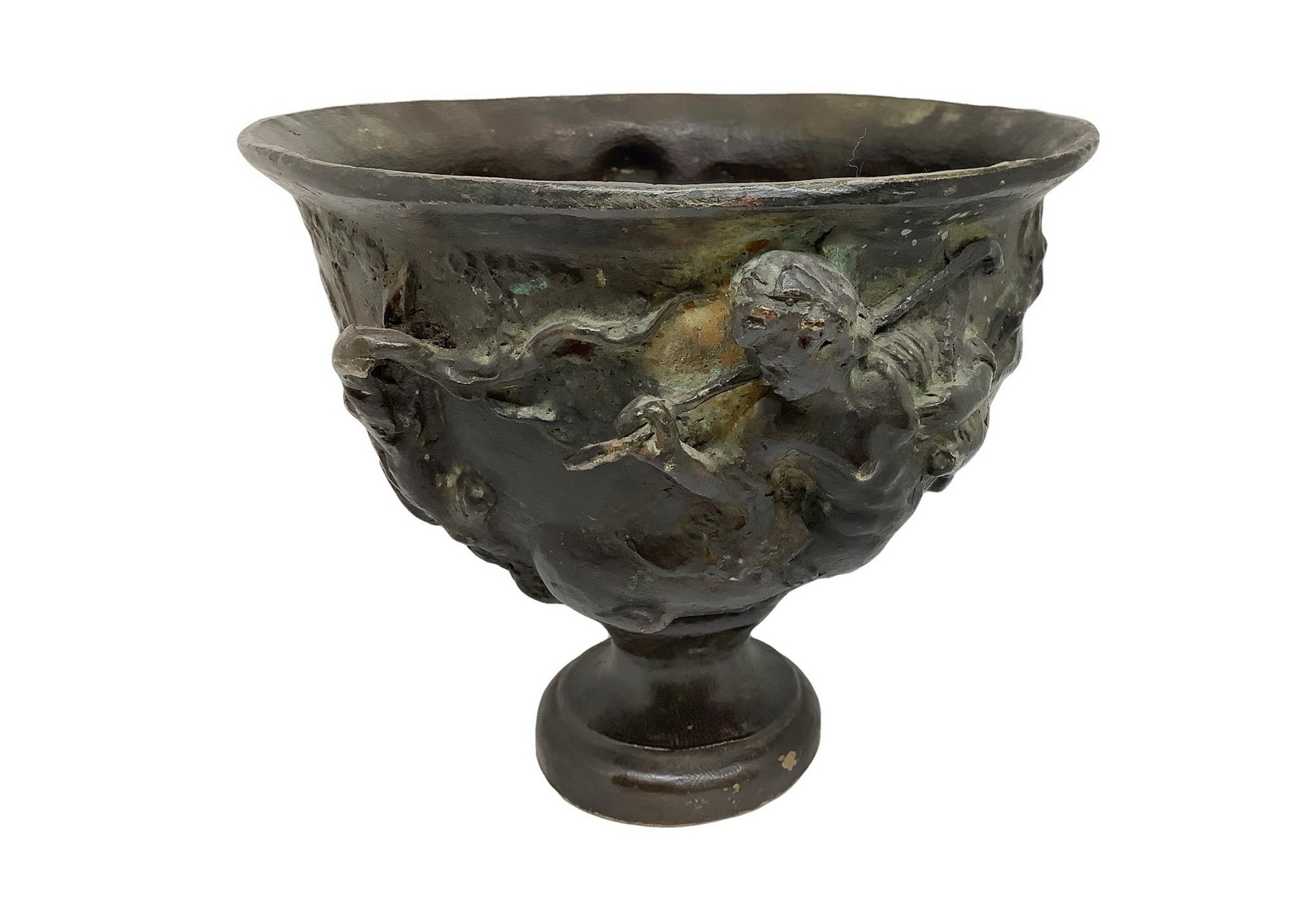 Coppa in bronzo con decorazione a sbalzo raffigurante centauro e centauressa offerenti alla loro madre protrettrice Giunione, 17° secolo Diametro cm 16, h cm 14 Bronzo