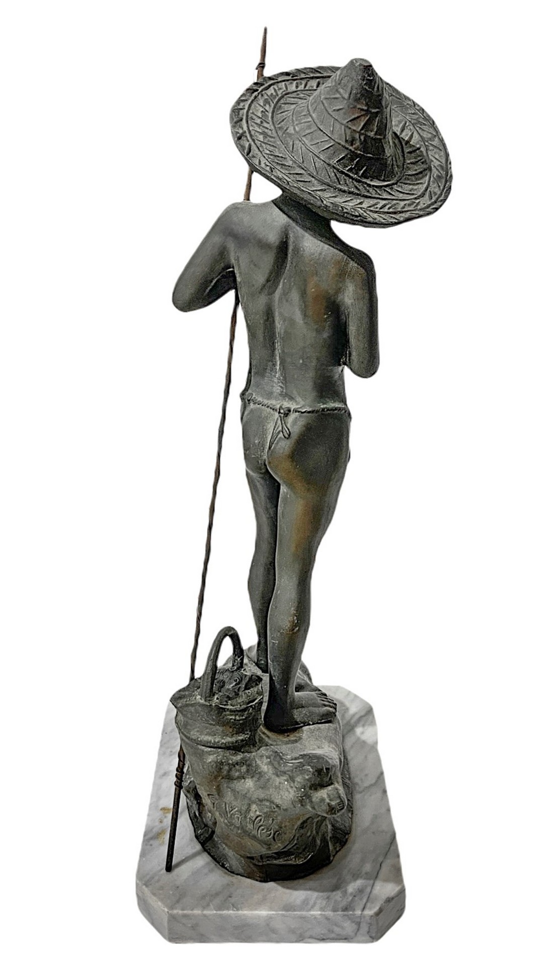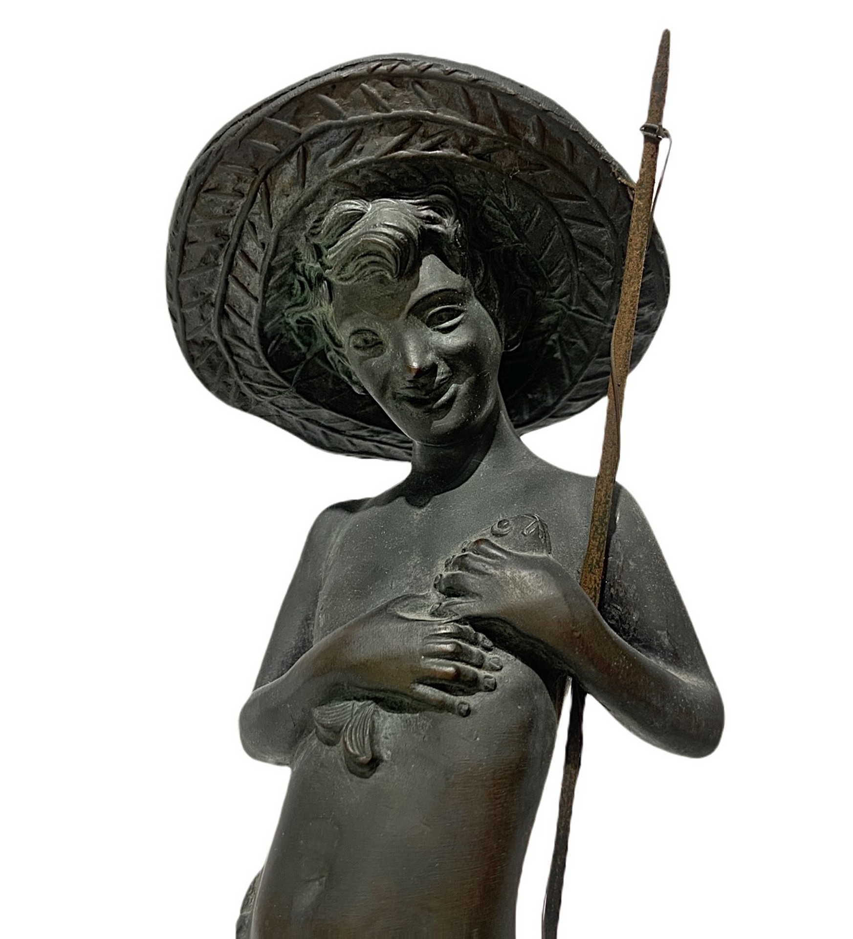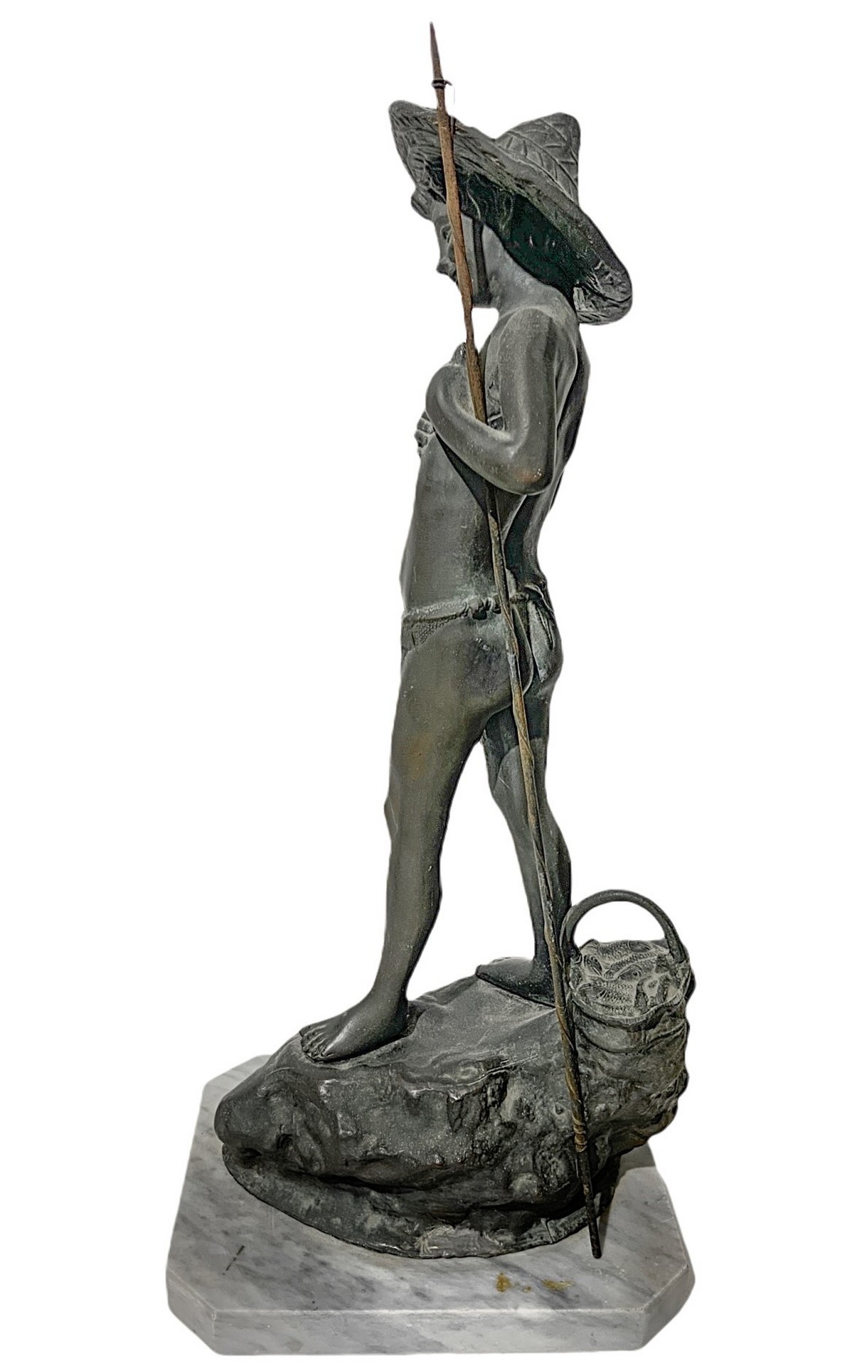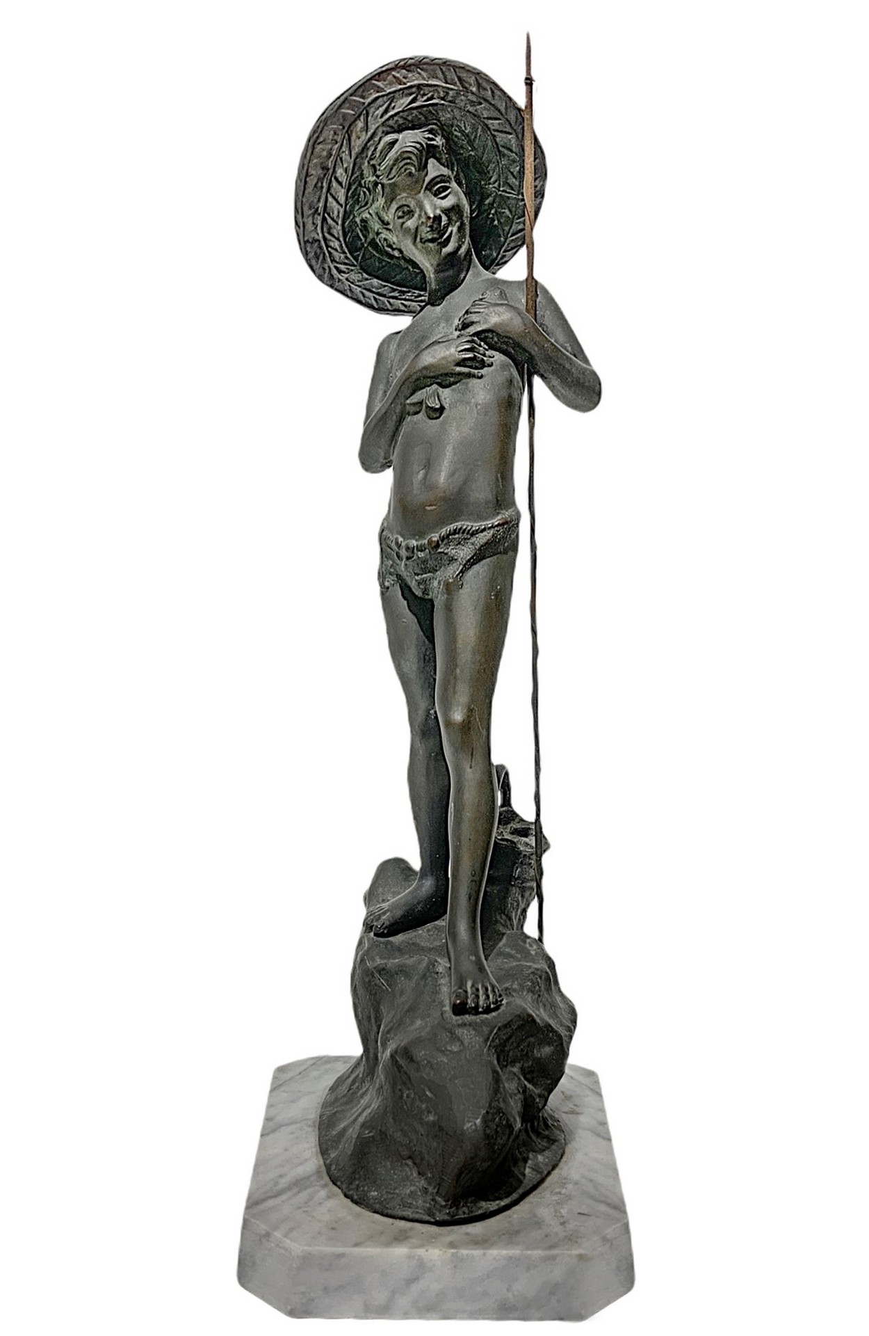 Gianni Varlese (Napoli 1888-Napoli 1922) - Pescatorello su scoglio, 20° secolo H 39 cm Scultura in antimonio Firma sul retro G. Varlese.