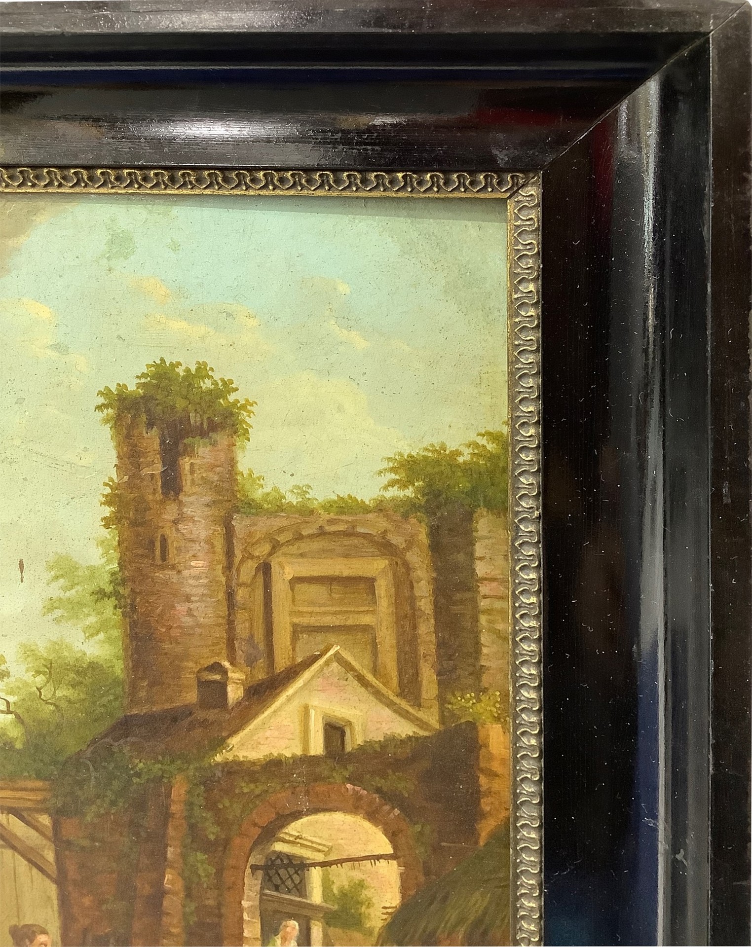 Scena popolare con personaggi, 19° secolo 26x20 cm, in cornice 32x26 cm Dipinto a olio su tavola