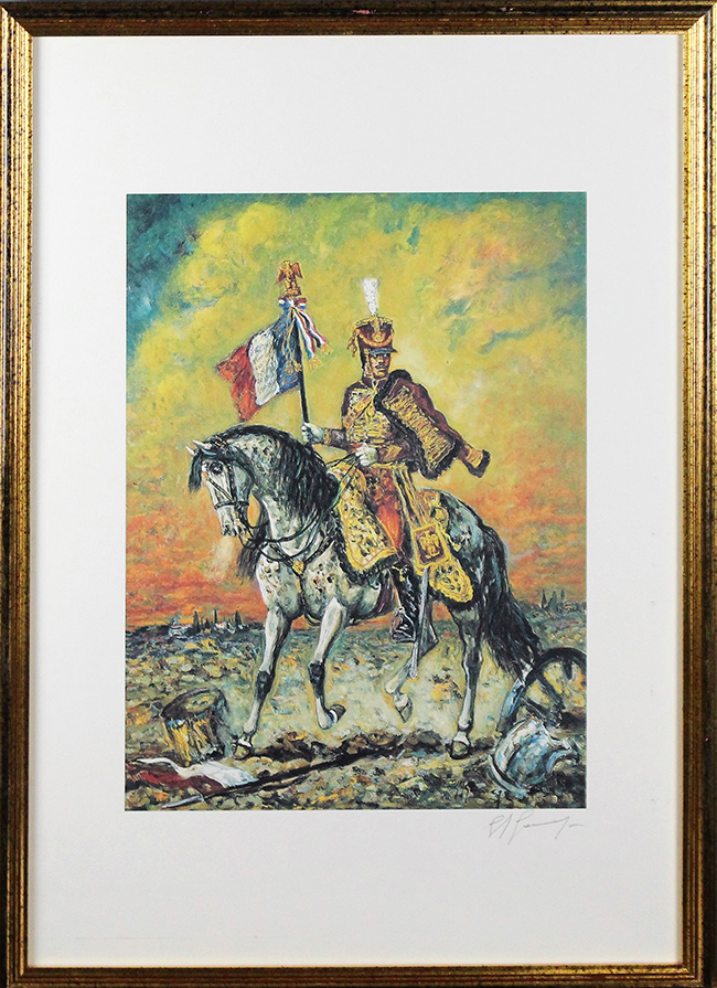 GIOVAN FRANCESCO GONZAGA, "Porta stendardo", Litografia su carta, Dim. 42x31, Al fronte: firmato in bassoa destra, Opera con cornice