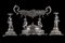 Trittico centrotavola in argento composto da alzata e due candelieri. Vasca bia