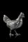 Gallina a tutto tondo in argento sbalzato con piume e zampe cesellate, occhi in vetro. Titolo 800 (h. cm 21,5) (g lordi 700)