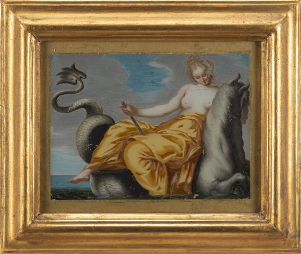 Lotto 161 | Scuola del secolo XVII "Nereide su mostro marino" e "Satiressa" coppia di verre