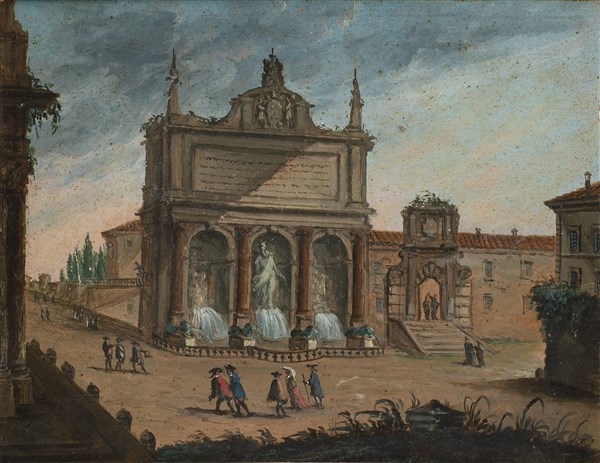 Inscribed on the back "Fontanone entro le/ Sisto V..." and "...Roma 29...1752"